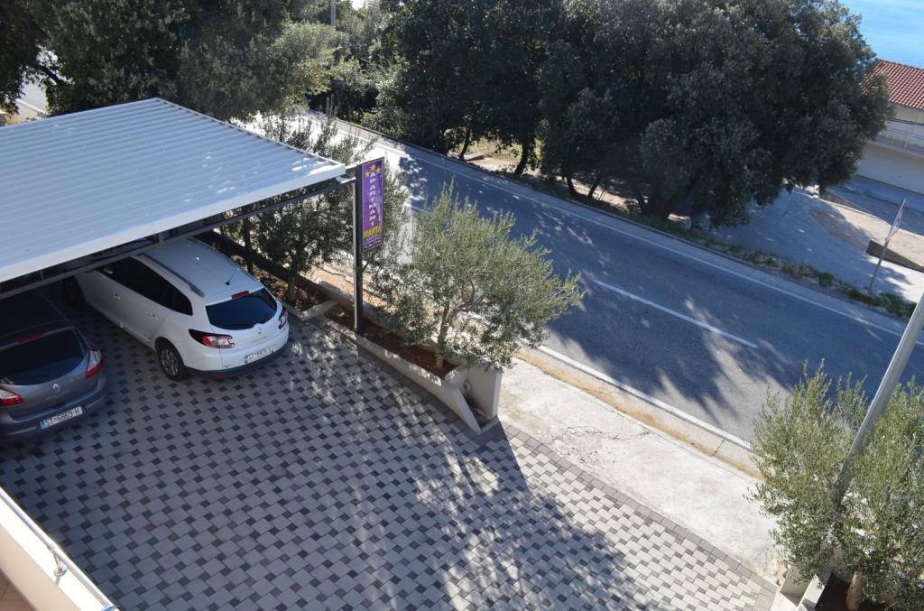 Turistička pristojba nije uključena u cijenu.U kući je osiguran pristup Internetu bez nadoplate. Takoder u apartmanu imate fen za kosu,mikrovalnu,svakodnevne čiste ručnike,tekući sapun,opremljenu kuhinju.Kod ove kuće na raspolaganju vam je i dvorište od 100 m2. U sklopu i zajednički gril.Gostima je na raspolaganju parkiralište čiju dostupnost je potrebno provjeriti unaprijed (svaki apartman ima jedno parking mjesto). Uslužna mjesta koja su u blizini: Samoposluga, Restoran. Kilometar i više od vas udaljeni su: Ljekarna, Bankomat, Centar. Od objekta na plažu vodi više od 100 stepenica.