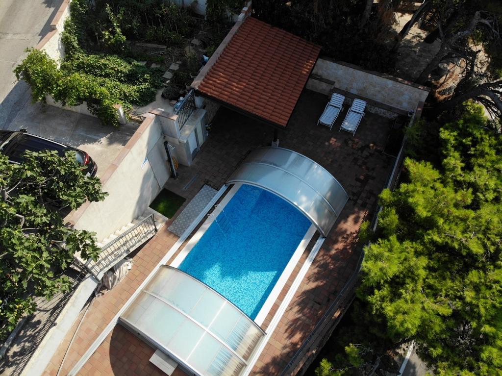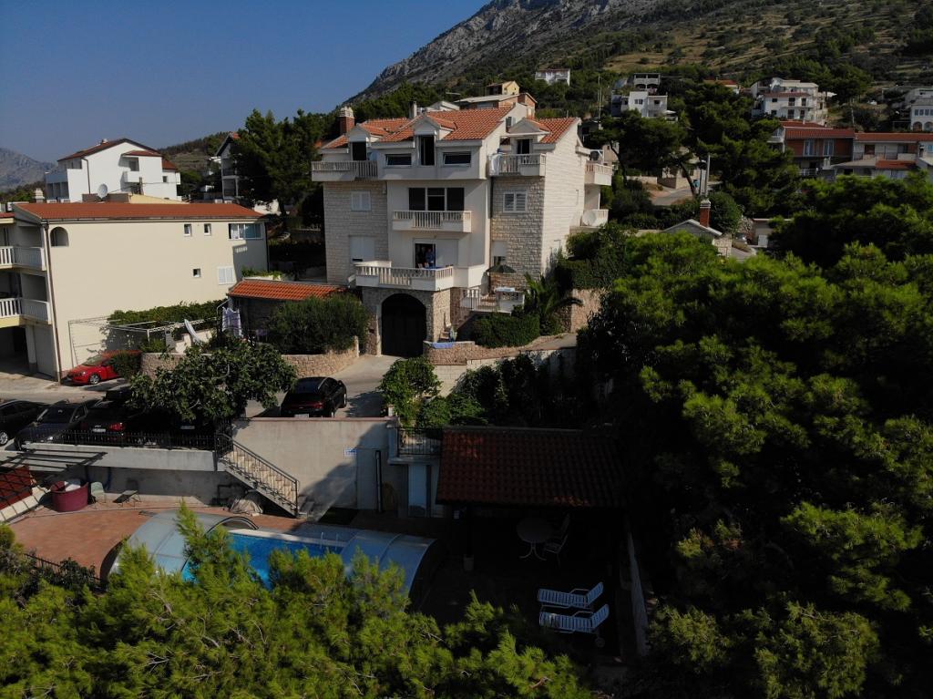 kuća se nalazi na brijegu sa predivnim pogledom na otok Brač, Makarsku rivijeru i Split