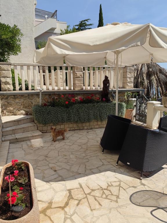 Objekt se nalazi na samoj šljunčanoj plaži, 10 metara od kristalno čistog mora, u mirnom okružju idealnom za odmor. Apartmani su uređeni s ukusom i opremljeni svim potrebnim za ugodan odmor. Objekt ima garažu na samoj plaži gdje gosti mogu ostaviti svoju opremu za plažu, daske, suncobrane, ležaljke i ostalo. Objekt ima dvije terase koje gostima nude mjesto za druženje i osvježenje . U neposrednoj blizini objekta nalazi se nekoliko restorana, kafić, trgovina, a do grada Omiša može se doći laganom šetnjom za pola sata. Napominjemo da u apartman mogu biti smještene dvije odrasle osobe te jedno do dvoje djece do 12 godina. Također , kućni ljubimci su dobrodošli, ali zbog kapaciteta apartmana mogu biti manji , do 6m kg.