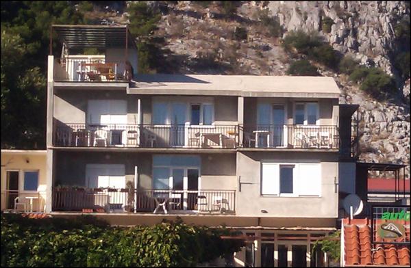 Opremljeni apartmani smješteni u središtu Omiša s pogledom na more,rijeku i planine. Izuzetno mirno i atraktivno mjesto za ugodan boravak i odmor. More , centar udaljeni 5 minuta hoda. Prioritet većim grupama. Nadkriveni parking, također teraca s pogledom na more i stari grad, ugodnu zabavu uz roštilj i domaće orginalno vino i prošek. Nudimo izlet u staro mjesto Svinišće , mogućnosti planinarenje, rafting, zipline, peka na domaći autohtoni način i ostalo.