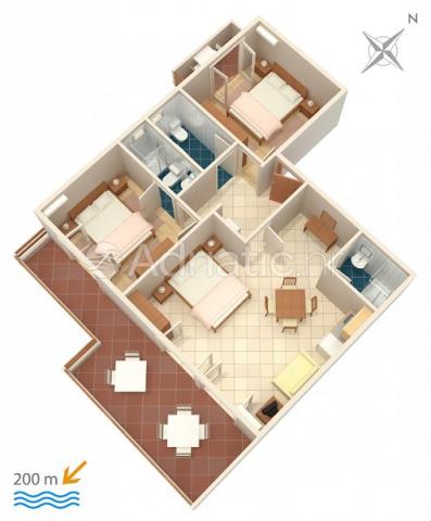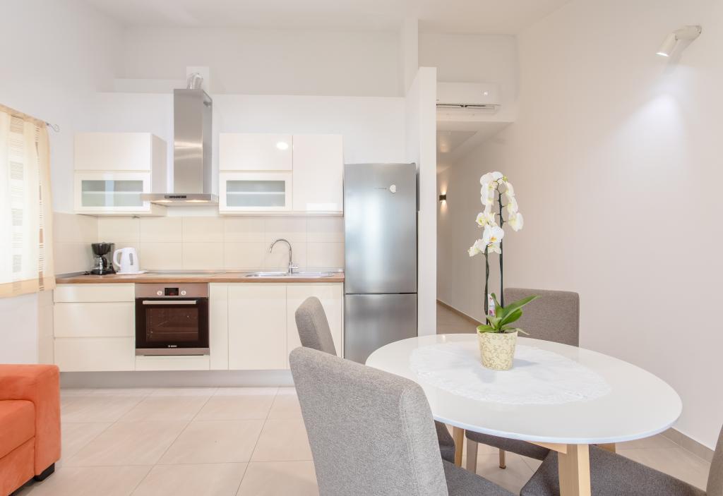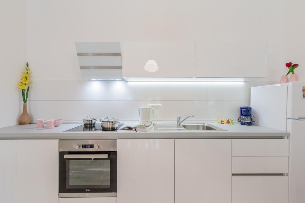 Stan u prizemlju, 2 spavaće sobe dnevni boravak s kuhinjom i blagovaonicom, propustio sam samo pogled na more, iznad vrlo hladnom mjestu, namješten u modernom način, ali važno je da je čisto; u neposrednoj blizini plaže, ljekarna, centar, liječnik (u susjedstvu). Domaćini milja, ne uprzykszający gore. Klima je samo u dnevnoj sobi na doplatak. Ja bih preporučio da mjesto koje je vrlo cool, pješčane i šljunčane plaže, idealno mjesto za djecu. U večernjim satima, tiho i mirno. Šteta je da je plaža nije osvijetljen šetalište hodati ugodnijim.