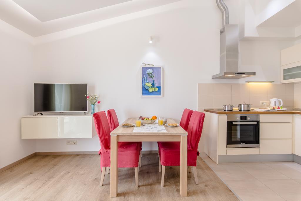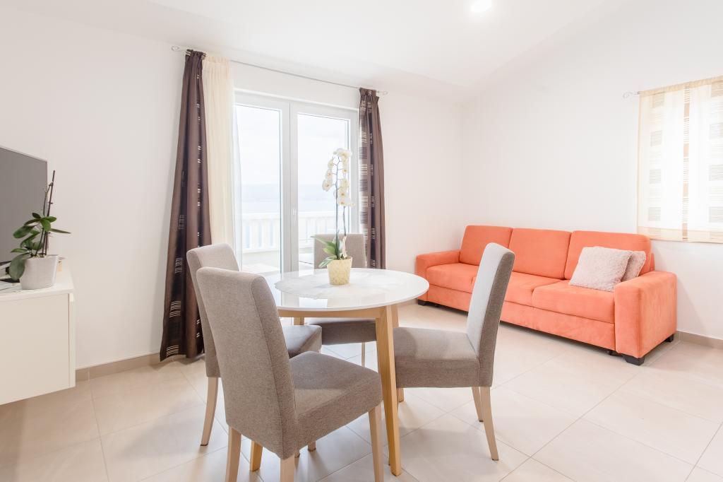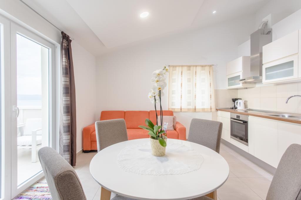 kopletno opremljeni apartmani u mirnom mjestu Duce, klimatizirani sa osiguranim parkingom, udaljeni 100 metara od mora i 1 km od centra Omisa. Imamo i drugi objekt 3km udaljen od Omiša: apartmants Kadenca.
