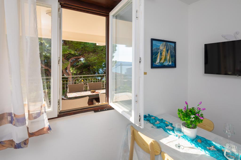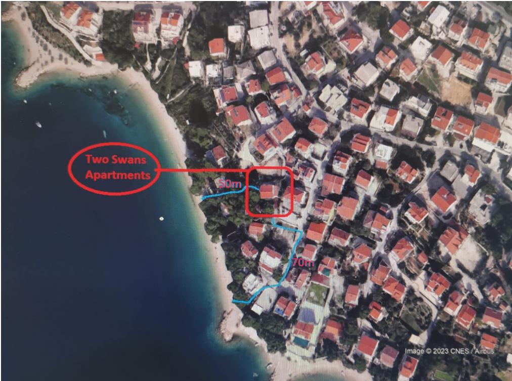 Apartman je lociran u Nemiri, na 70m udaljenosti od mora, 30m udaljenosti od restorana te 40m od dućana. Mirna lokacija 3km od centra Omiša.