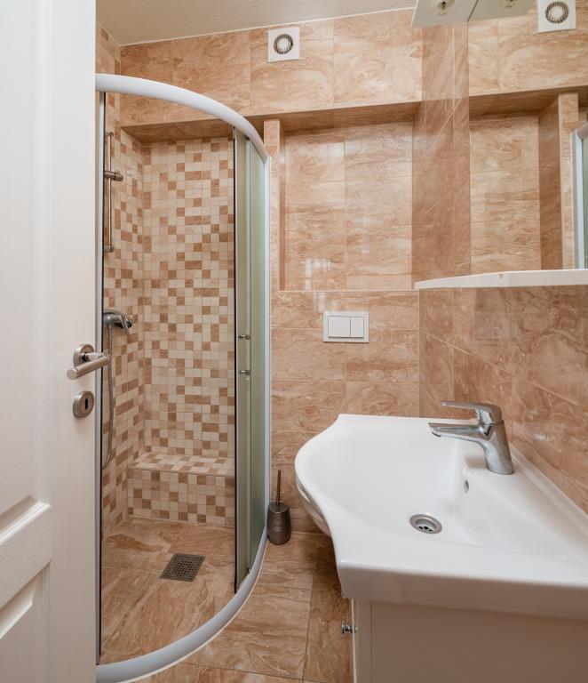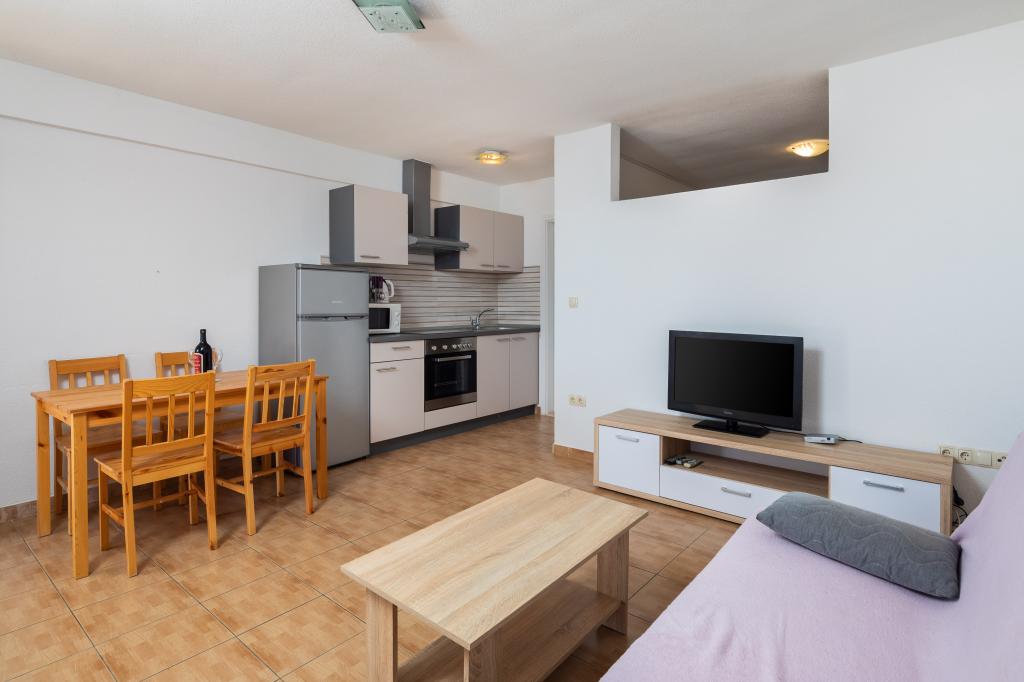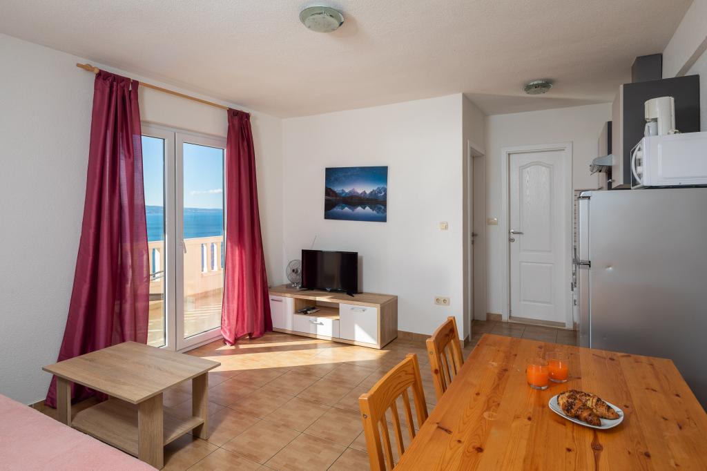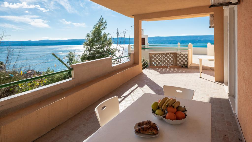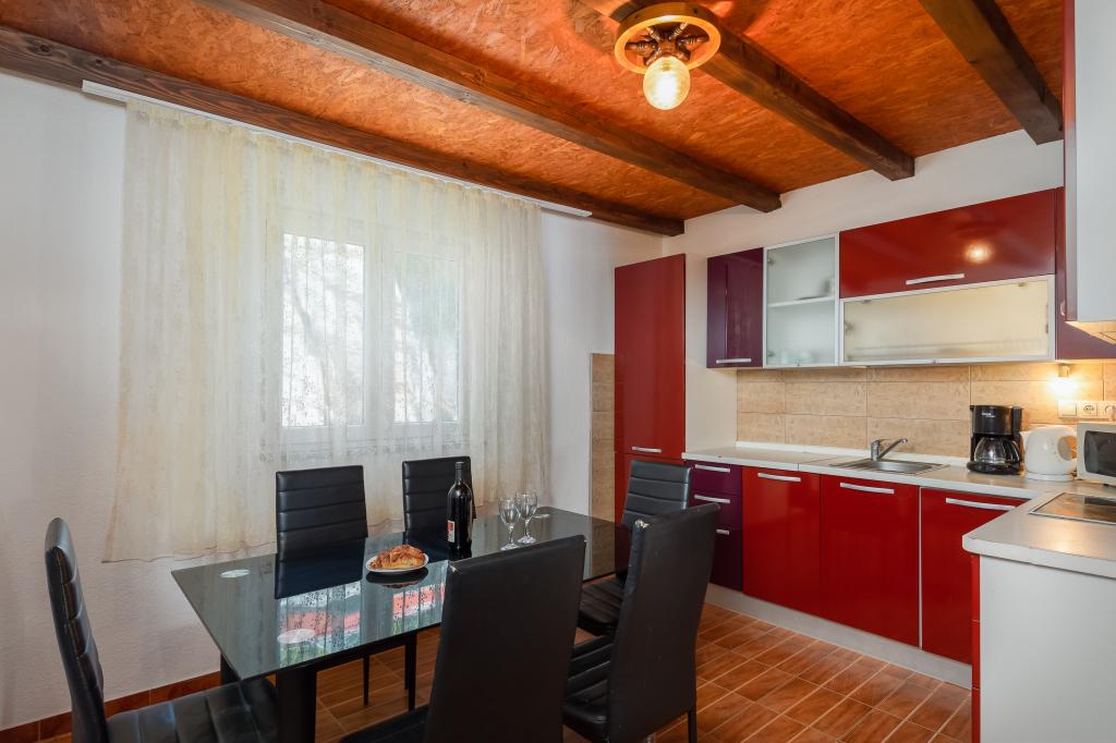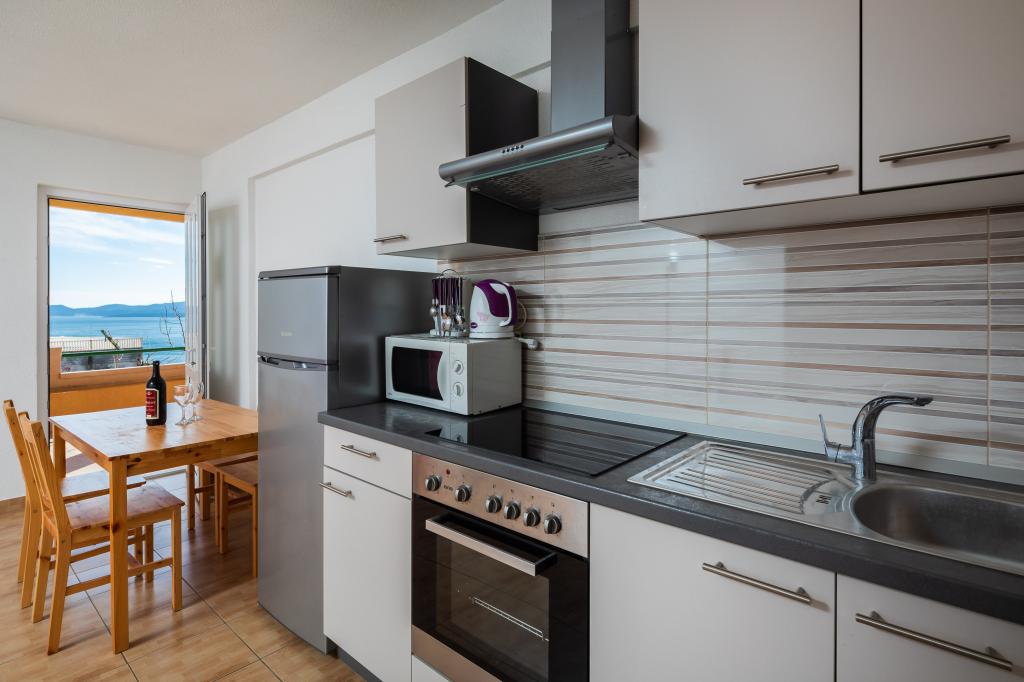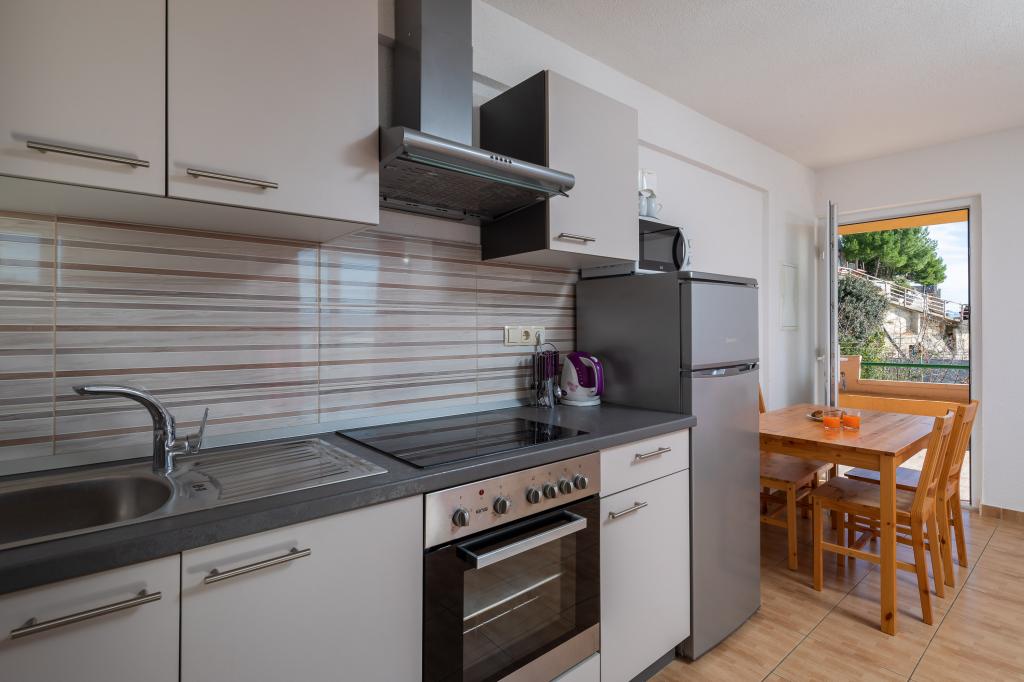 Super apartmani , sa privatnom terasom , zajednickim bazenom ,grilom i pogledom na more . Apartmani se sastoji od spavacih soba sa bracnim krevetom , opremljenom kuhinjom , dnevnim boravkom sa kaucem na razvlacenje . Apartmani posjeduju veliko privatno parkiraliste. Najbliza plaza je udaljena cca 150 metara i do nje vode privatne stepenice od apartmana .