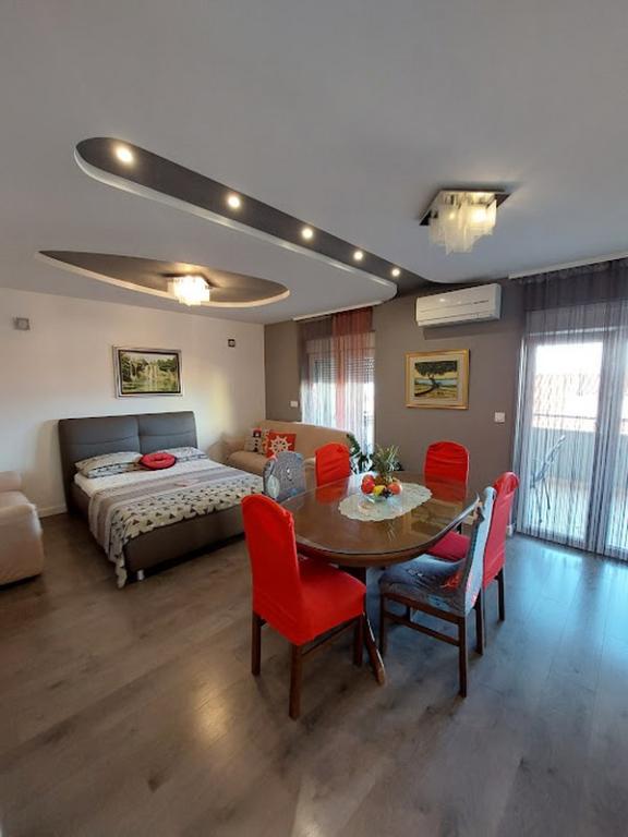 Pročitaj više Smještajne jediniceKod rezervacije potrebno je platiti akontaciju u iznosu od 25%.Vrijeme dolaska je od 14h,a odlaska do 10 sati ujutro.Ukoliko gosti dođu ranije ,mogu se parkirati i otići na plažu /ručak dok apartman bude spreman. Za eventualne štete nastale boravkom gosta u apartmanu,gost je dužan platiti nastalu štetu koju je počinio. Kućni red gosti u apartmanu trebaju poštivati.