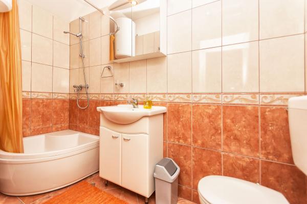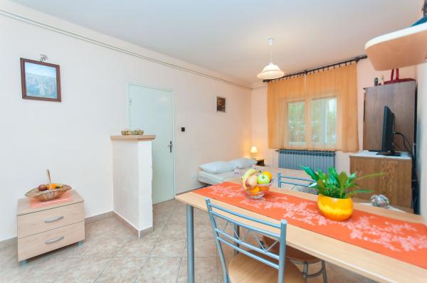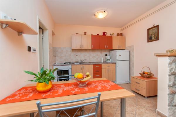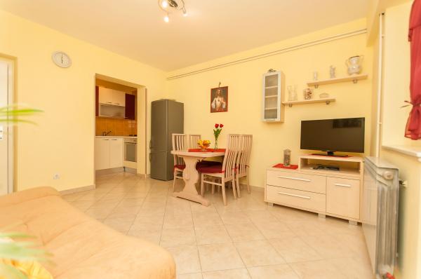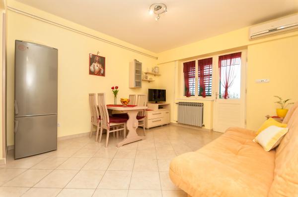 Suvremeno opremljeni apartmani,kuhinje sadrže sve što je potrebno ,također se dobiju i rućnici za tuširanje.U mali studio apartman također može stati i pomocni ležaj za dijete do 10 godina ili djećji krevetić.Dijete do 3 godine života se ne naplaćuje a od 3 godine je 10 eura po danu.U veliki apartman također može stati i peta osoba na pomocni lezaj u dnevnom boravku koja se naplaćuje 10 eura po danu.Klima nije ukljucena u cijenu vec se naplaćuje dodatno 7 eura po danu ako gost želi.