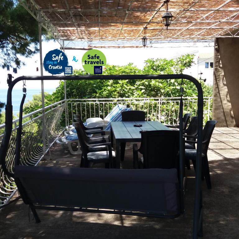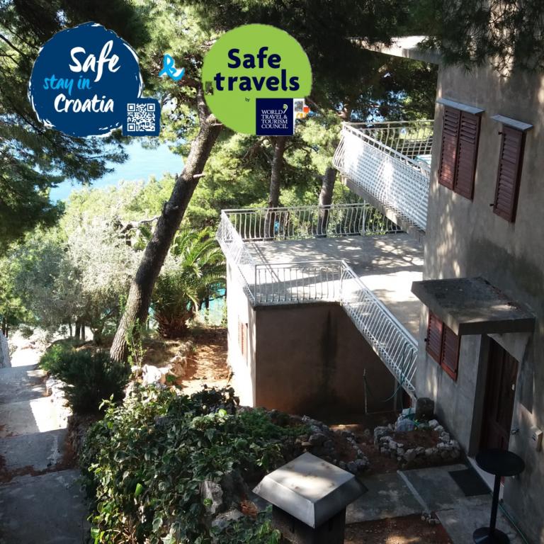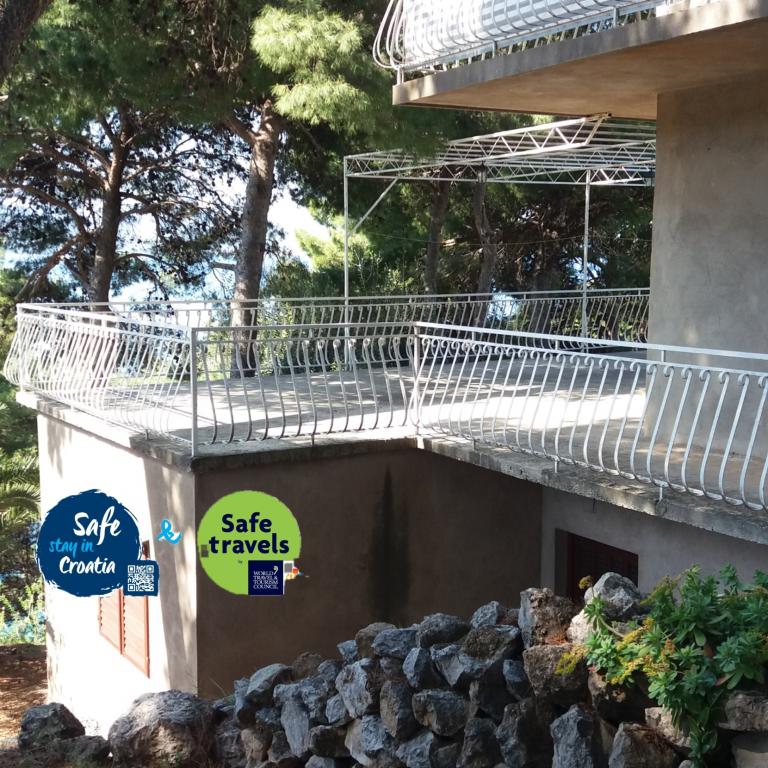 Obiteljska kuća sa dva apartmana (jedan za 2 1 osobu i drugi za 6 1 osobu ) smještena na prekrasnom mjestu uz samo more, okružena vlastitom borovom šumom koja se prostire do same plaže. Kuća je oaza mira i tišine daleko od buke prometa i ljudske galame. Kuća je udaljena 30 m od plaže a 40 m od mora. Jedino što remeti savršen mir je cvrkut ptica i šum valova. Apartmani su klimatizirani i opremljeni. U dvorištu ispred kuće je roštilj na usluzi gostima a parking je pored kuće ukljućen u cijenu apartmana. Trgovina je udaljena oko 350 m od kuće a sportsko igralište 300 m. Centar grada je oko 3000 m a tu su i apoteka, benzinska stanica, ambulanta. Autobusna stanica je oko 600 m od kuće. Svi ostali podaci su dostupni na upit. Ap. 6 1 se sastoji od 3 dvokrevetne sobe, dnevnog boravka s kaučem, kuhinje, kupatila, wc-a te velike terase površine 60 m2 s pogledom na more. Ap. 2 1 ima odvojenu dvokrevetnu spavaću sobu, dnevni boravak sa kuhinjom i kaučem, kupatilo i terasu s pogledom na more.