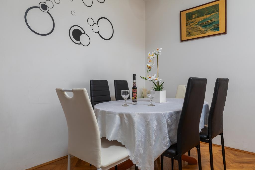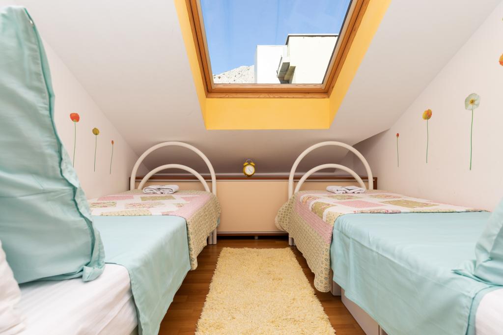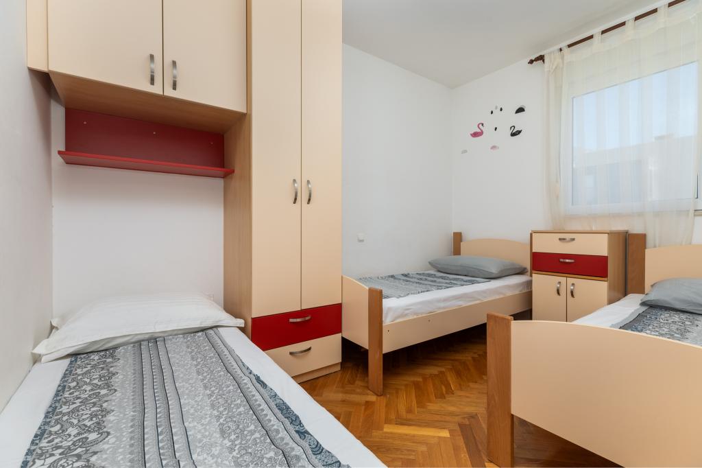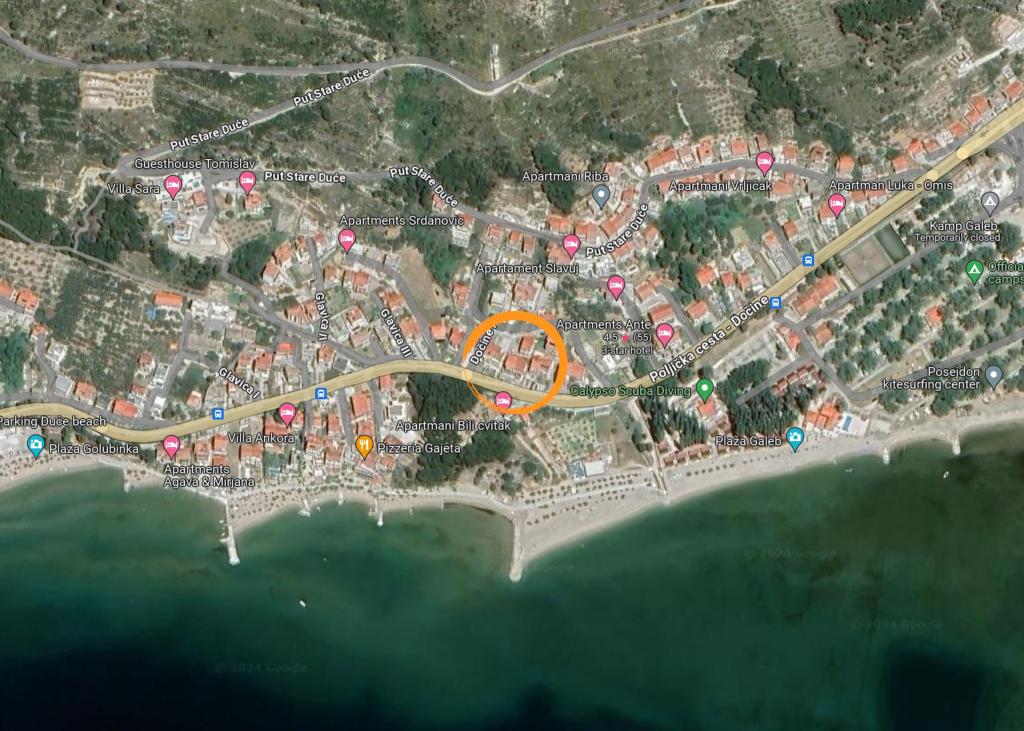 Apartman A7+1 se nalazi u Omišu, na adresi Četvrt ribnjak 13. Ima 4 spavaće sobe, dnevni boravak, kuhinju, dva kupatila s tušem, balkon s prekrasnim pogledom na more. Nalazi se blizu plaže i centra grada Omiša. Apartman A5 se nalazi u Omišu, na adresi Četvrt ribnjak 13, blizu plaže i centra grada. Ima dvije spavaće sobe,kuhinju, kupatilo, dnevni boravak i terasu.
