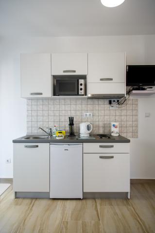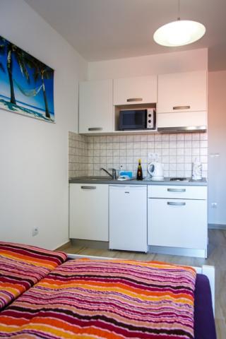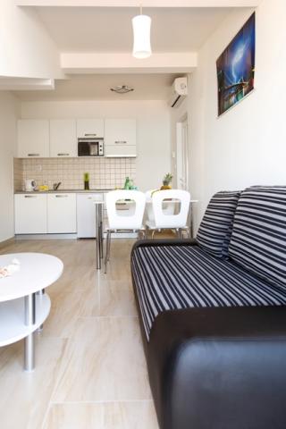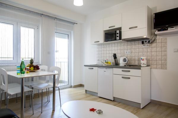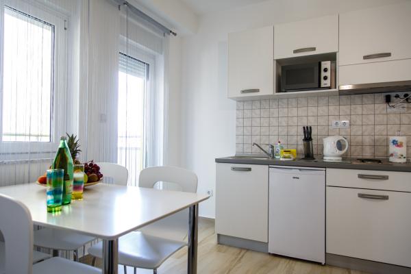 Turistička pristojba je uključena u cijenu.Apartman nije ispunio naša očekivanja; kupaonica je jako mala i morate se sagnuti da biste nešto učinili. Na krevetu u maloj sobi bilo je nemoguće spavati jer se daska zabijala u leđa; mislim da bi bračni madrac bio bolji umjesto ovog kreveta. Tu je i perilica rublja, prvo pranje je besplatno, a sljedeće košta 5 eura. Jedini plus je terasa s prekrasnim pogledom.