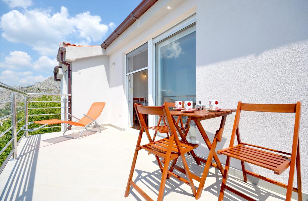 Apartmani sa prekrasnim pogledom na more nalaze se u prijatnom i mirnom starom naselju Borak, udaljenom 3 km od centra grada, pod omiškom Dinarom.