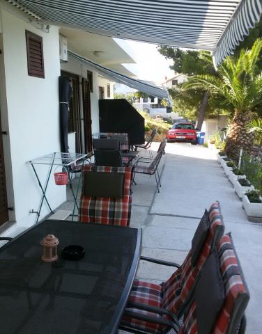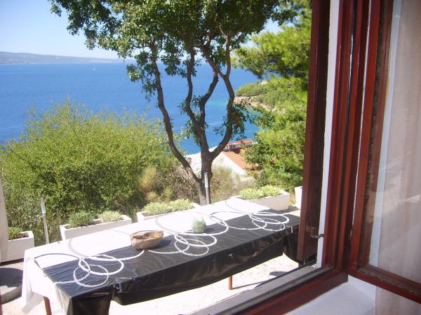 Apartman je na brežuljku, nekoliko minuta od plaže. U večernjim satima možete sjediti na terasi i gledati u prekrasan pogled na more. Velika vrijednost za novac. Vlasnik je jako ljubazan i uslužan. On daje sve od sebe kako bi vaš boravak učinio što boljim, savjetima, uputama i dodacima. Klima u spavaćoj sobi je odlična, pomoćni ležaj u kuhinji ima samo ventilator.