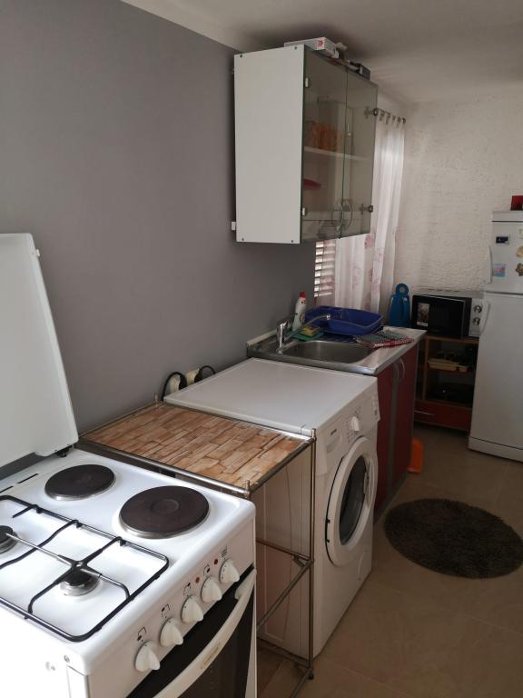 Apartman je čist, s dvije spavaće sobe i klima uređajem, a kuhinja je potpuno opremljena ventilatorom. Vlasnik je vrlo ljubazan i uslužan. Prekrasan pogled s terase je užitak za ispijanje kave ujutro i provođenje vremena s obitelji navečer. Do plaže vodi dosta stepenica, ali to nama nije bio problem. Plaža je prekrasna i nema gužve, s velikim borom koji pruža puno hlada.
