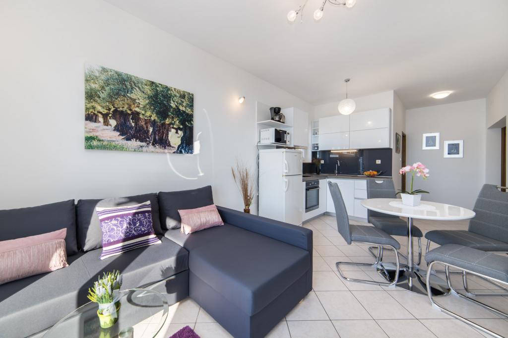 Iako ovaj apartman nema direktni pogled na more kakav svi žele i traže, sve ostalo nadoknađuje očekivanja! Slike u oglasu su autentične, sve je čisto i održavano. Gazda je susretljiv, ljubazan i uvijek na usluzi! Wi fi ima pokrivenost na placu, parking u većini dana nudi hlad pod maslinama, bazen i ležaljke su čiste, jacuzzi je pravo osvježenje. Blizina plaže je 200 m s predivnim malim kafićem za poslijepodnevnog osvježenje nakon kupanja u čistom moru. A jutro rezervirano za kupanje u bazenu i chillanje pod suncobranima dok se djeca zabavljaj u bazenu (kao i oni koji se tako osjećaju). Dvije godine za redom dolazimo i doista smo oduševljeni kako smještajem i gazdama, tako i prirodom jer su apartmani okruženi drvećem, grmovima ružmarina, agavama i oleanderima.
