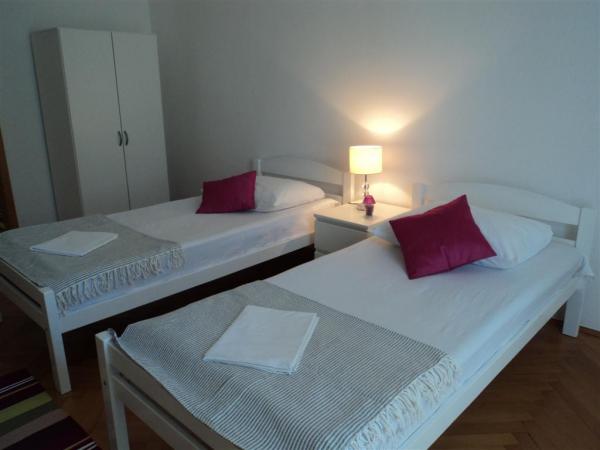 Pročitaj više Smještajne jedinicePrilikom rezervacije smještaja plaća se akontacija 100 eura. Rezervacija se uz puni povrat novca može otkazati najdalje mjesec dana prije dolaska. Ostatak cijene plaća se po smještaju u apartman. Idealno vrijeme dolaska je oko 14:00 sati, a odlaska oko 11:00. BTW- Moderna obiteljska kuća kompletno je termoizolirana. Također,u svim su apartmanima - klima uređaji. Kuća, neposredno ispred, ima vlastiti parking za 5 automobila. Parking se ne može rezervirati, ali je slobodan i besplatan za goste apartmana, ukoliko na njemu ima praznog mjesta. Besplatna javna površina je također u blizini apartmana.