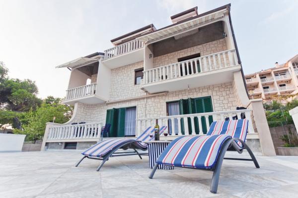 Raskošni apartmani za ugodan obiteljski odmor. Svaki apartman ima više odvojenih soba i kupaoni te bez obzira na veličinu osigurava svakoj osobi dovoljnu privatnost! Prekrasan pogled iz svih apartmana na more te na otok Brač. Velika terasa spremna svima na korištenje opremljena velikim stolovima i roštiljom učinit će vaša ljetna predvečerja nezaboravnima. Također imamo i vanjski tuš za brzinsko tuširanje od soli. Svega 3 minute hodanja do prve plaže i mora. Plaža je pogodna za djecu i za odrasle, obiluje obiteljima dobro raspoloženima koji uživaju u suncu i moru.