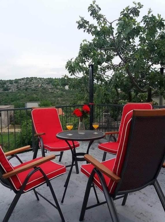 Villa Musini dvori smještena je u mirnom okuženju seoske idile Kostanje. Daleko od gradske galame, budit će vas pjev ptica i relaksirajuća atmosfera. Villa je smještena pola sata udaljena od Splita i treba vam samo 15-20 min vožnja autom do plaže. Samo par minuta hoda od naše Ville naći ćete staze za vožnje bicikli i staze za planinarenje. Blizina rijeke Cetine nudi bogat izbor vanjskih aktivnosti kao vožnje kanuom, rafting, ribolov, kupanje i još mnogo toga. Naša Villa je tip stare kamene kuće koja sadrži autentičnu i tradicionalnu Dalmatinsku konobu u kojoj možete uživati u delicijama roštilja koje vam stoji na raspolaganju. Također kuća se sastoji od 2 velike bračne sobe, dnevne sobe sa sofom na razvlačenje za 2 i još jednom pomoćnom sofom za 1 osobu. Wi Fi internet za sve naše goste..Kupaonicu sa tušem i veš mašinom. Velika vanjska terasa sa spogledom na seosku idilu i zelenilo. Dođite kod nas i doživite pravi odmor u domaćoj relaksirajućoj atmosfe