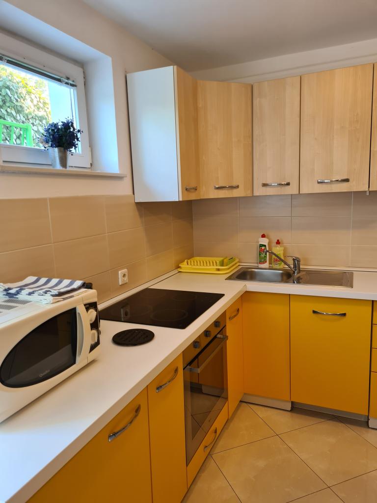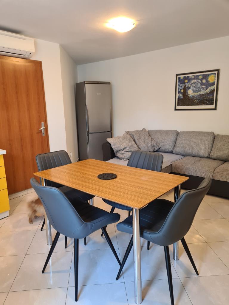 Apartman u mirnom predjelu Omišlja, samo 100 metara udaljen od centra. 10 minuta hoda do plaže. Restoran i trgovina 5 minuta hoda od objekta.