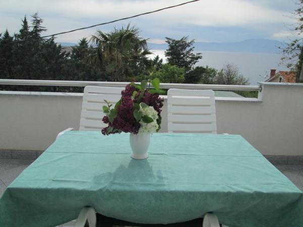smještena je na drugom redu do mora, 2 minute hoda do plaže, mirna i tiha lokacija, pogled na more i kvarner, prekrasan zalazak sunca.