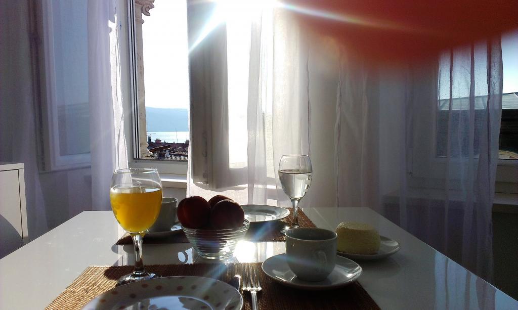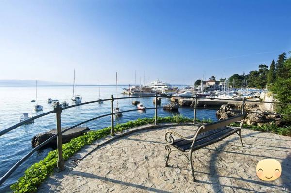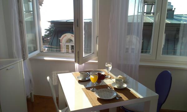 Udoban apartman za 4 osobe u samom centru Opatije s prekrasnim pogledom na more. Apartman je kompletno opremljen i uređen novim namještajem. Apartman se nalazi u samom centru, vrlo blizu svih sadržaja i plaže. Nalazi se između tržnice i pošte, samo 300- tinjak metara od poznate šetnice Lungo mare. Na samo 50 m od apartmana je trgovina, pekara, kafić... Parking je moguć u istoj ulici na javnom parkiralištu koje se naplaćuje. Autobusna stanica je neposredno blizu apartmana i prometno je povezana s Rijekom i ostalim gradovima tako da je dolazak vrlo jednostavan i javnim prijevozom.