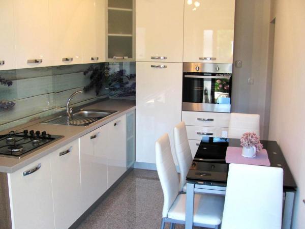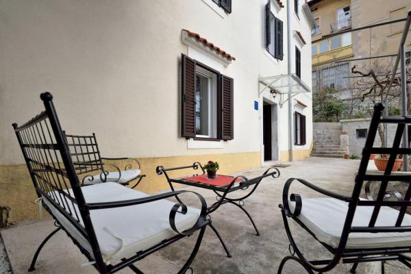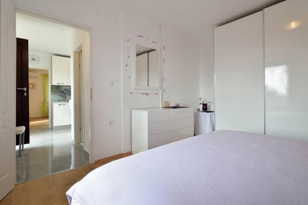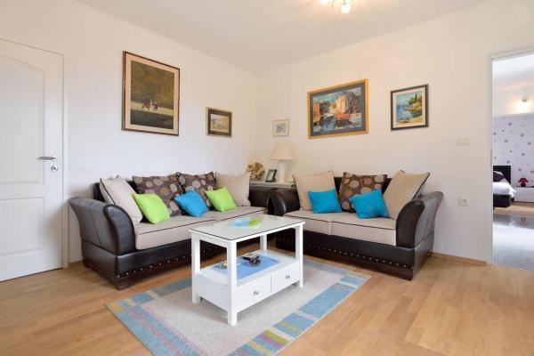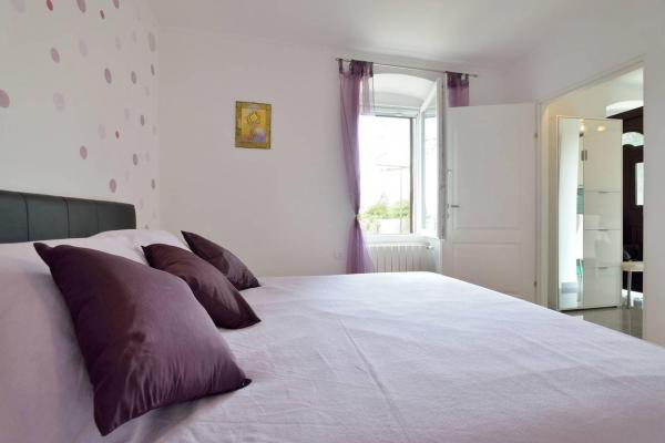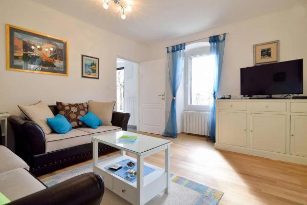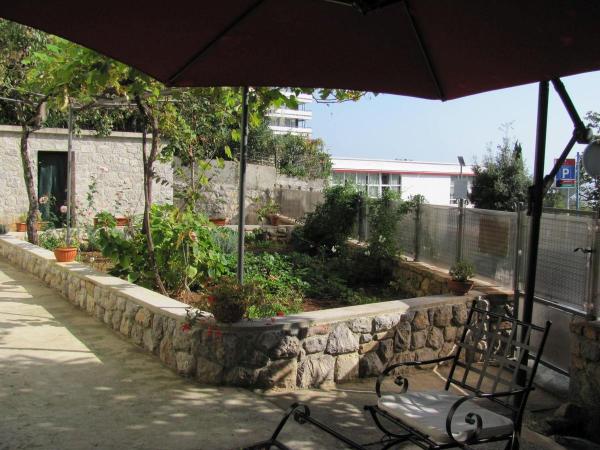 Kompletno i suvremeno opremljen apartman u centru grada u mirnoj ulici, prvi red do mora iznad pješčane plaže. Ima veliki vrt sa terasom, te mogućnost parkiranja ispred ulaza. Lagan je pristup i teško pokretnim osobama kao i osobama s djecom jer je svega 4 stepenice na ulazu u vrt.