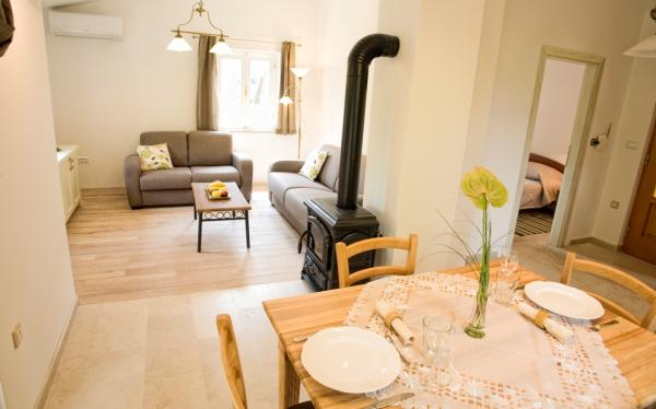 Turistička pristojba nije uključena u cijenu.Posebnost naših objekata je što u cijenu smještaja ulazi i korištenje prekrasne tradicionalne konobe u vlasništvu obitelji koja se nalazi u prizemlju kuće. U ovoj konobi vlasnik objekta čuva svoje nagrađeno vino i suhomesnate proizvode koje preko zime priprema s mnogo ljubavi. Konoba u kojoj se zasigurno živi i u kojoj ćete moći iskusiti dašak nekih prošlih, lijepih vremena. Pored konobe gosti imaju pravo i korištenja vrtnog zidanog roštilja.