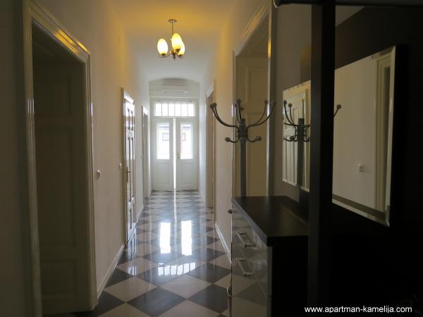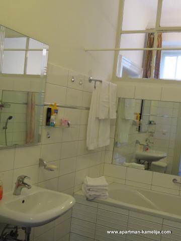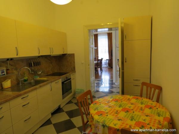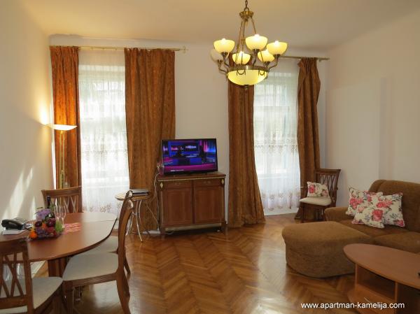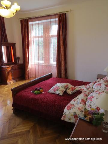 Dragi gosti. Nudimo Vam kvalitetno opremljen apartman (100 m2) koji je smješten na prvom katu Ville Emilije u mirnoj ulici u centru Opatiji samo 100 metara od mora. Visoki stropovi. Ima lijep pogled na more, balkon sa tendom i vrtnom garniturom. Namijenjen za boravak 2 do 6 odrasle osobe sa djecom. Apartman ima 100 m2, 2 spavaće sobe, veliki dnevni boravak, TV(smart-TV) i satelit-tv, 2 wc-a (sa kadom i sa tuš-kabinom), besplatan WI-FI i Internet. Apartman je opremljen: perilica rublja, perilica suđa, kuhalo za vodu, štednjak, pećnica, veliki hladnjak sa ledenicom, moderno opremljena kuhinja, mikrovalna pećnica, sušilo za kosu, set za peglanje, klima uređaj, podno grijanje, dječji krevetić, dječji set, posteljina, ručnici, posuđe za jelo i kuhanje. Ispred Ville nalazi se vrt. Apartman je osiguran protuprovalnim vratima, također ima sef. Parking je u dvorištu. Dobrodošli! Samo uzmite svoje osobne stvari i dođite k nam na odmor! Mi smo Vam nudimo samo to u ćemu smo sami uzivamo.