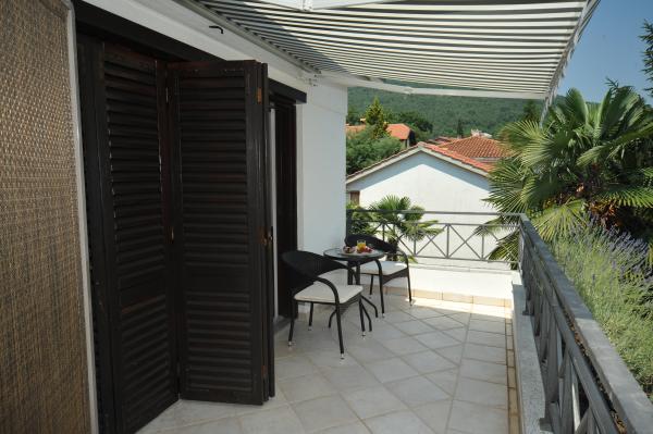 Moderno opremljeni apartmani u privatnoj vili. Smješteni su u Opatiji na Novoj cesti iznad plaže Slatina. Udaljenost do plaže je svega 5 minuta hoda ( stepenice). Apartmani se sastoje od spavaće sobe s bračnim krevetom, kupaonice, dnevnog boravka s kuhinjom, terase s pogledom na more i hodnikom. U neposrednoj blizini su shooping centar Slatina, garaža Slatina, restorani i suvenirnice.