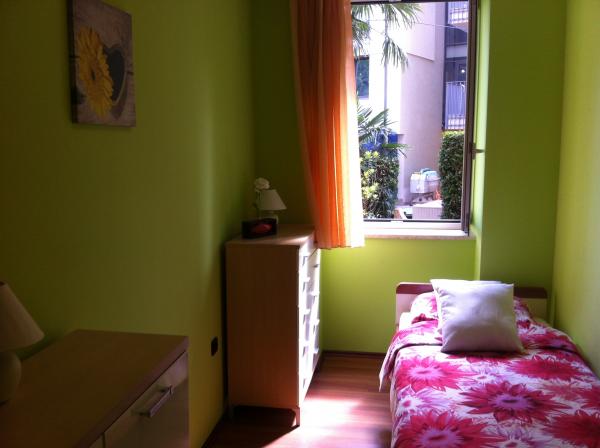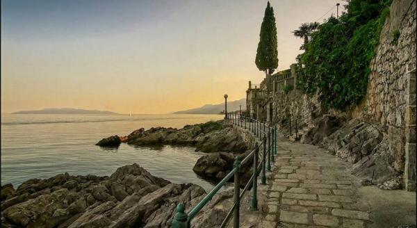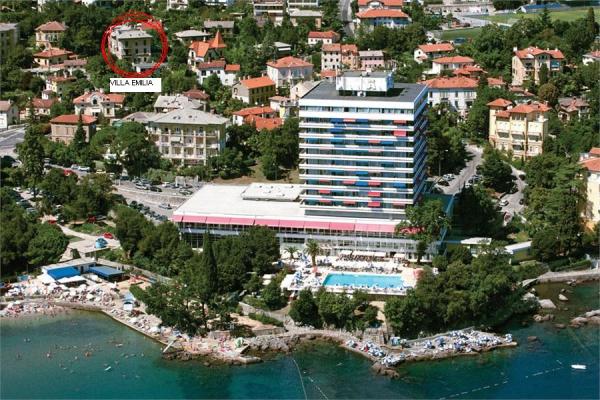 Dobar dan dragi gosti. Nudimo vam luksuzno namješten apartman, smješten u centru Opatije samo 200 metara od mora. Apartman se nalazi u prizemlju Ville Emilie. Pogodan za invalide i malu djecu. 200 metara od dječije plaže. Ispred apartmana nalazi se vrt u kojem imate vrtnu garnituru. Apartman je opremljen: štednjak,hladnjak sa ledenicim,perilica posuđa,mikrovalna,aparat za kavu,klima uređaj,perilica rublja. Kapacitet apartmana je 4 osobe, sa dvije odvojene sobe.