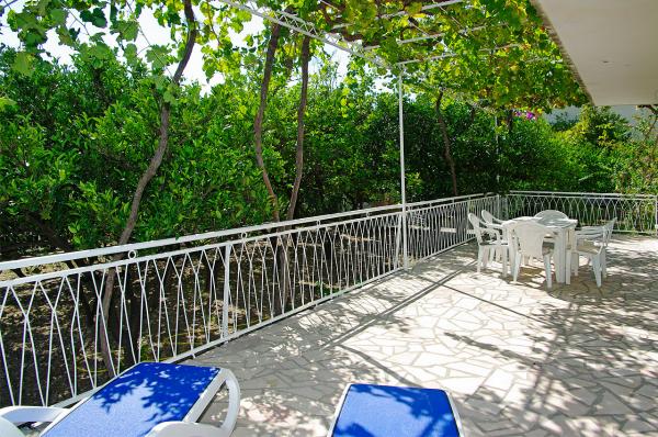 Obiteljska kuća Dužević smještena je u tihoj, pješačkoj zoni Orebića, svega 30 metara od najbliže šljunčane plaže i romatničnog, 2 kilometara dugog šetališta. Svi apartmani u ponudi građeni su tako da imaju potpuno odvojeni ulaz, terase kao i mogućnost nesmetanog uživanja u velikom voćnjaku agruma, šipaka, nespola i smokava. Sjevernu, prostranu stranu dvorišta (cca 250 m2) krasi staro drvo rogača sa krošnjom visine 15 metara ispod koje je smještan dio parkinga za 8 automobila. Na toj sjevernoj strani, u prizemlju, nalaze se dva mala studio apartmana. U prizemlju na južnoj satrani kuće smješten je apartman za 4 osobe sa velikom terasom pod odrinom vinove loze čiji je hlad idealno mjesto za opuštanje i malu djecu. Na prvom katu obiteljske kuće Dužević živi obitelj domaćina dok se na drugom katu nalazi veliki apartman za 8 osoba u kojem svaka od 4 sobe ima pogled na more. A terasa u sklopu tog apartmana sa pogledom na pelješki kanal kojem plove kruzeri i moderni jedrenjaci.