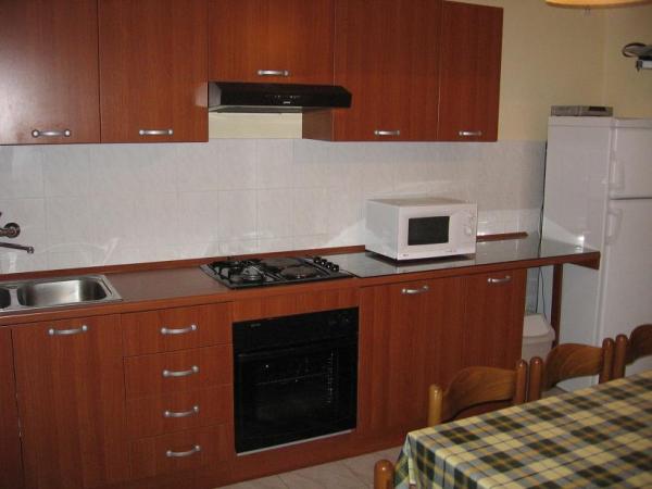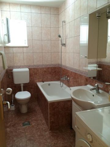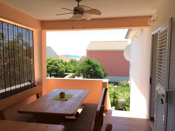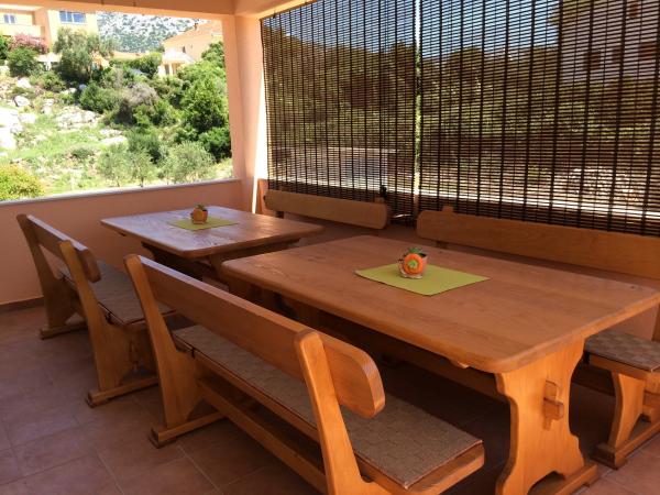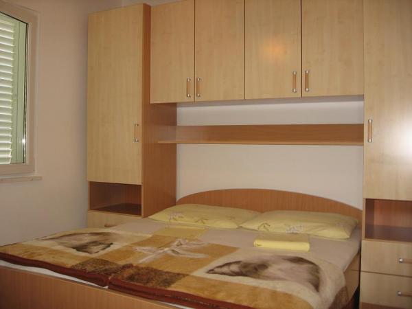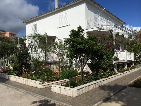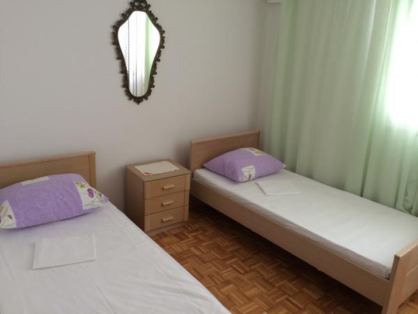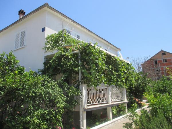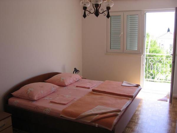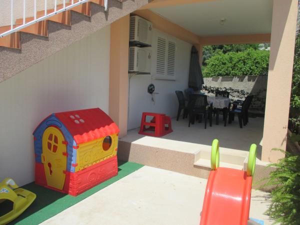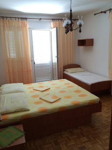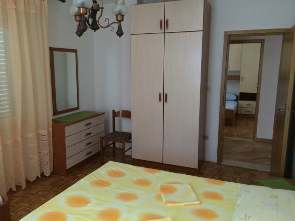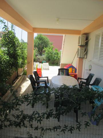 U obiteljskoj kući nalazi se veliki apartman. Kompletno je opremljen. Ima poseban ulaz i parking. Kuća se nalazi dvije minute hoda od plaže, mora, trgovine i banke. Apartman (8+ 2) se nalazi na prvom katu i sastoji se od četiri spavaće sobe (dvije trokrevetne i dvije dvokrevetne), velike kuhinje, dva kupatila sa toaletima (u jednom je perilica za rublje), velikog balkona i velike terase. Apartman je opremljen klima uređajem ( velika klima postavljena u hodniku), Wi-Fi internetom, mikrovalnom, štednjakom, pećnicom, perilicom posuđa, perilicom rublja, velikim frižiderom, svim potrebnim posuđem i posteljinom. Posteljina se mijenja jednom tjedno. U cijenu najma uračunati su taksa, Wi-Fi, parking i korištenje klime.
