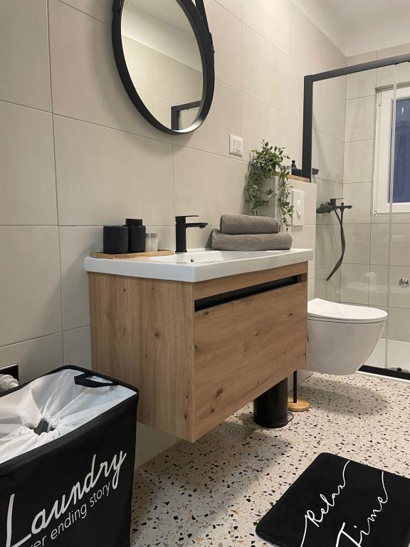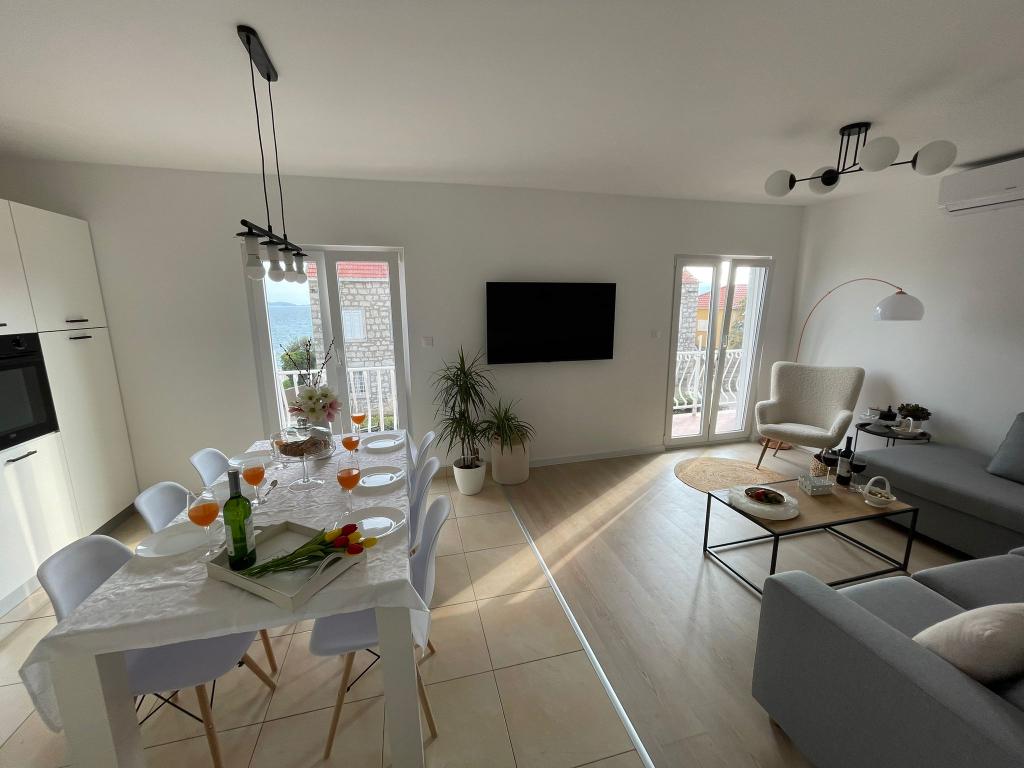 Prostran i dobro održavan apartman s pogledom na more, opremljen svim mogućim sadržajima - 2x TV s internet priključkom, Wi-Fi, klima uređaj u dnevnom boravku i spavaćim sobama, potpuno opremljena i moderna kuhinja [veliki plus za ledomat i automatska perilica] Jednostavan pristup stanu preko dvosmjerne ceste, dosta parking mjesta i terasa sa udobnom vrtnom garniturom. Lokacija u centru mjesta, nekoliko koraka od plaže, pristaništa i brojnih restorana, svrstava ovaj apartman u sam vrh u ovom gradu. Po dolasku, dočekala nas je ljupka gospođa koja nam je pomagala tijekom našeg boravka iu samom apartmanu čekajući nas vino, tinkturu i svježe voće i kolačiće u spavaćoj sobi. Imam jako lijepa sjećanja na moj boravak i iskreno preporučujem apartman ljudima koji cijene udobnost tijekom svog odmora.