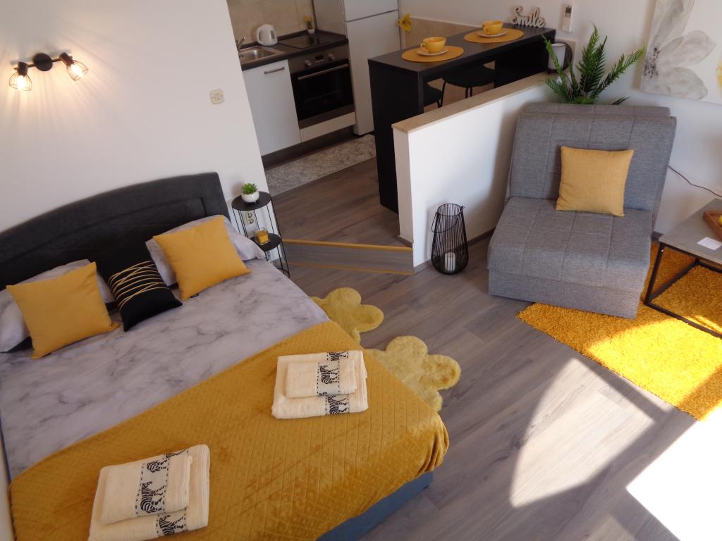Renoviran(2021 godine) Studio apartman M nalazi se na 3 metra od mora, u pjesackoj zoni u Orebicu. Gostima je dozvoljen pristup automobilom do parkinga koji je uz sam apartman. Provedite svoj odmor uzivajuci na terasi sa pogledom na more. Suncajte se i kupajte na par metara od apartmana. Apartman je opremljen klima uredjajem, besplatnim Wi-Fi prikljuckom, satelitskom televizijom i svim ostalim sto ce boravak uciniti ugodnim. Pekare, prodavnice, trznice, restorani i sve sto Vam moze zatrebati se nalazi na nekoliko minuta pjesice. Parkirajte auto i Vas odmor moze poceti!