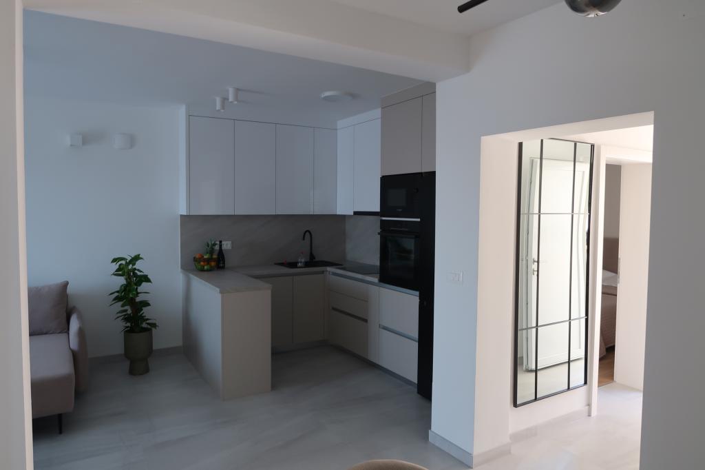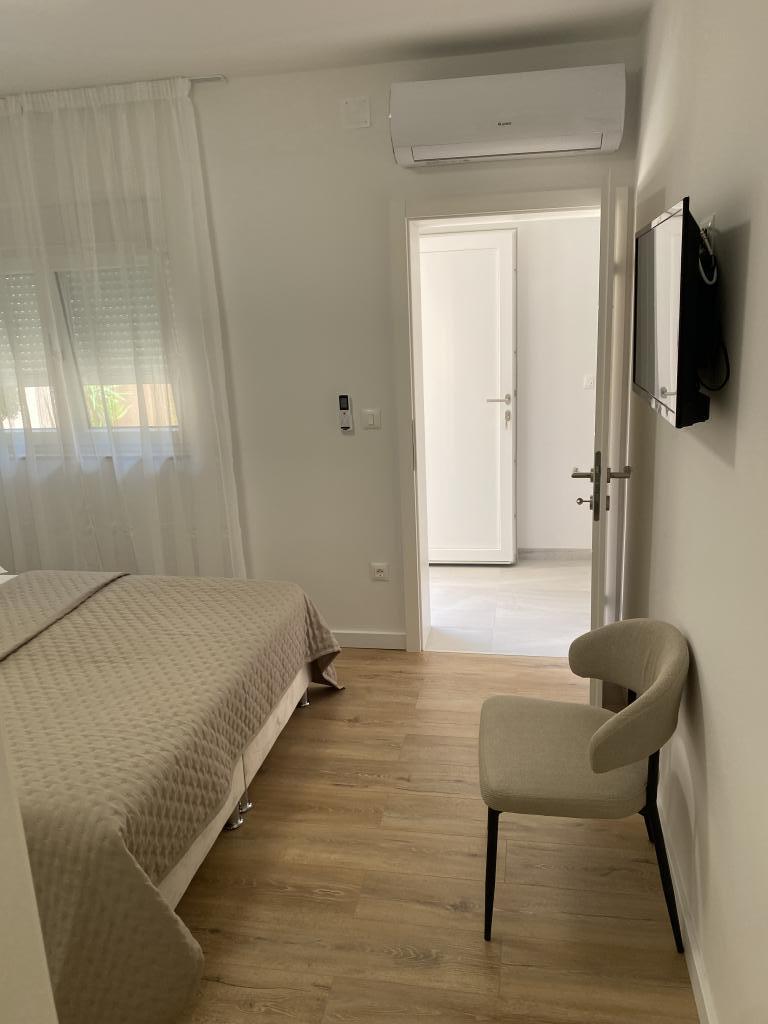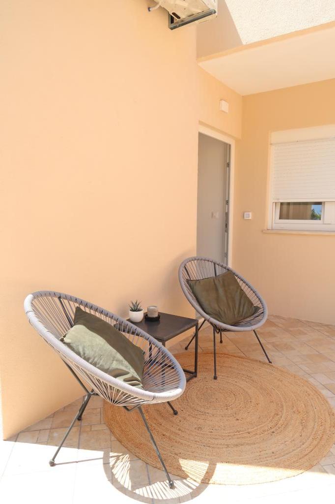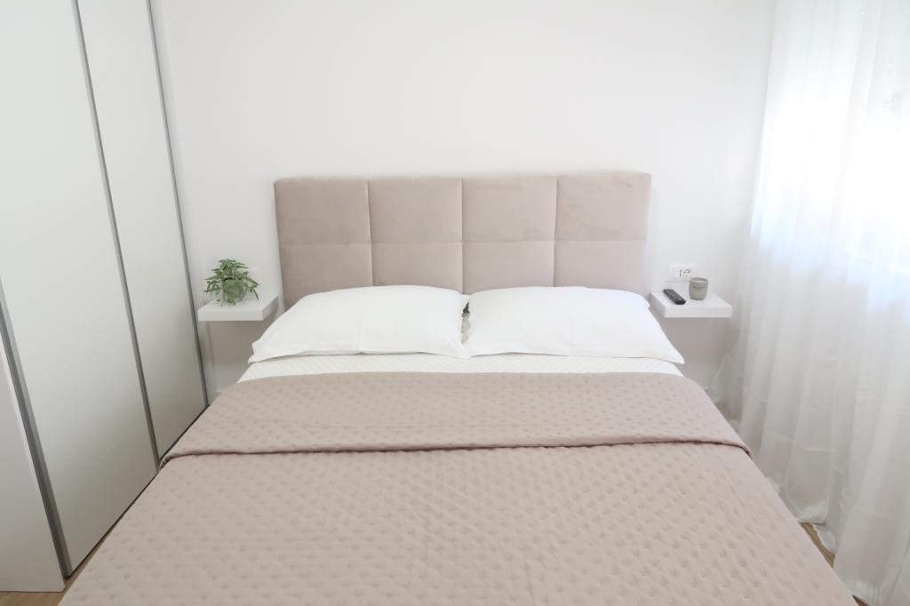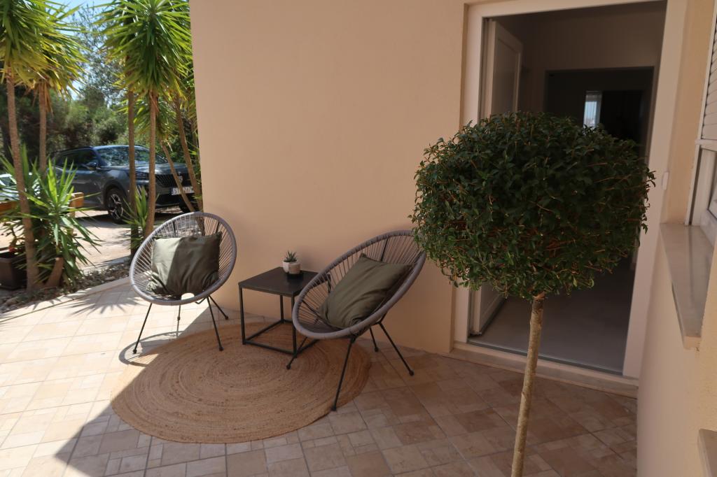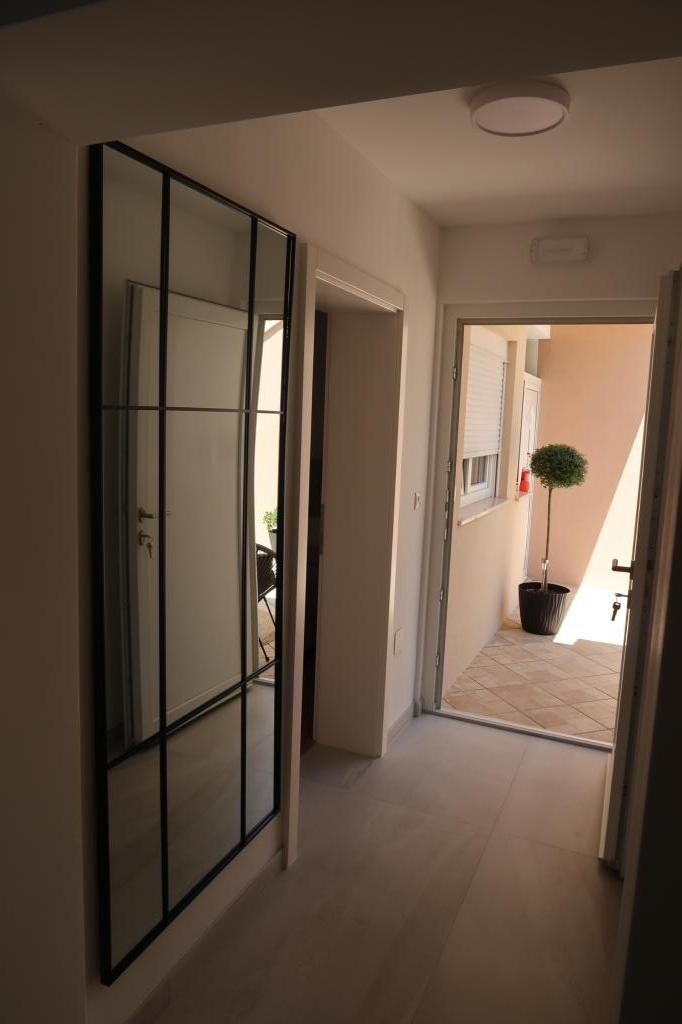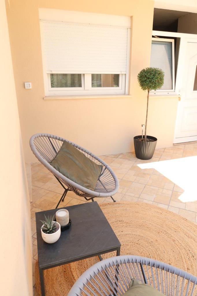 Kompletno opremljen i novouređen apartman. Smješten je 2 minute hoda od plaže i 5 minuta hoda od centra. Prva trgovina se nalazi 30m od objekta. U centru se nalazi restoran, kafić, ribarnica, tržnica, banka, pekara,... Smještaj uključuje besplatan parking i WI-FI. U sklopu objekta se nalazi komin na kojem je moguće ispeći roštilj. Apartman ima 2 terase, jedna ispred ulaznih vrata s dvije fotelje za odmor, a druga na južnoj strani s pogledom na more.
