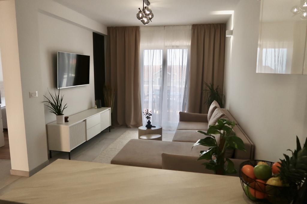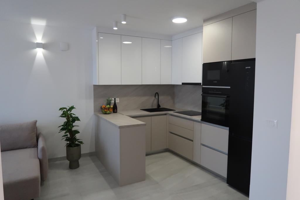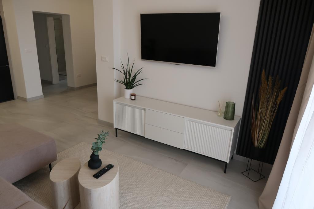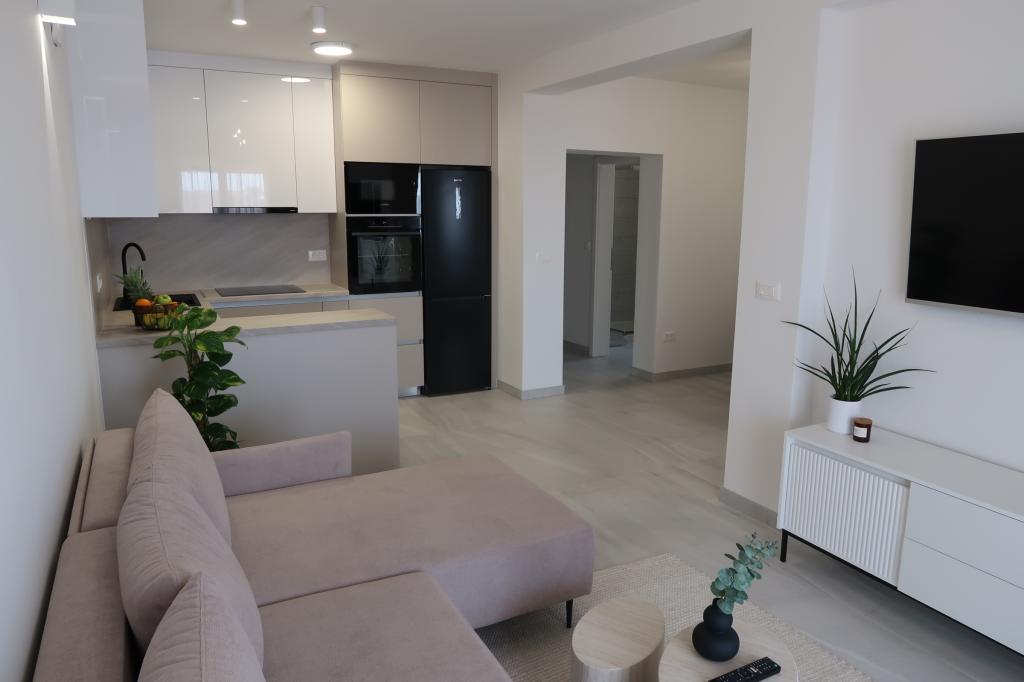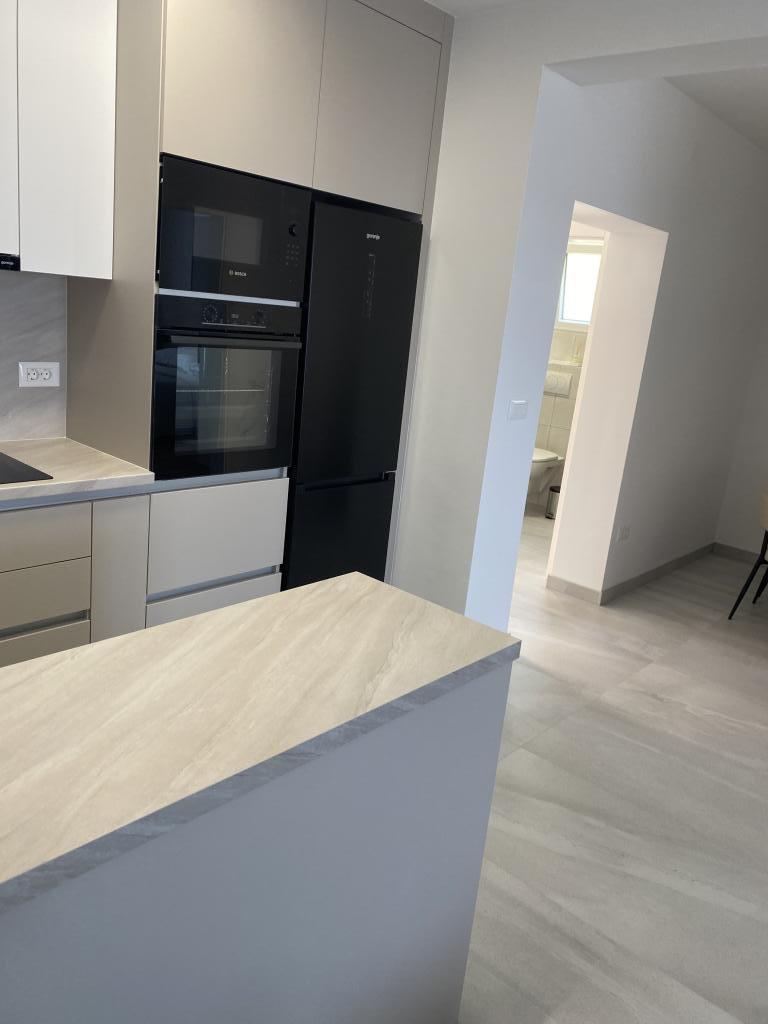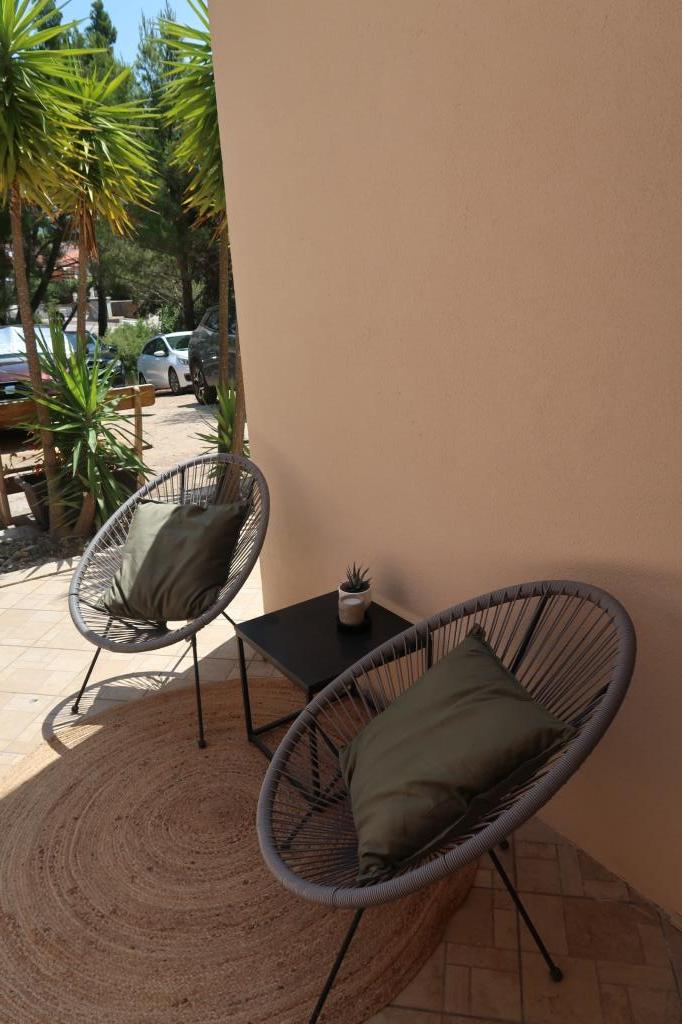 Kompletno opremljen i novouređen apartman. Smješten je 2 minute hoda od plaže i 5 minuta hoda od centra. Prva trgovina se nalazi 30m od objekta. U centru se nalazi restoran, kafić, ribarnica, tržnica, banka, pekara,... Smještaj uključuje besplatan parking i WI-FI. U sklopu objekta se nalazi komin na kojem je moguće ispeći roštilj. Apartman ima 2 terase, jedna ispred ulaznih vrata s dvije fotelje za odmor, a druga na južnoj strani s pogledom na more.
