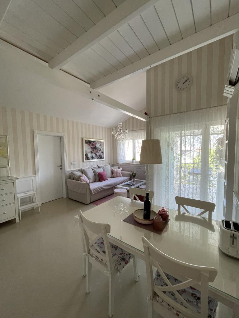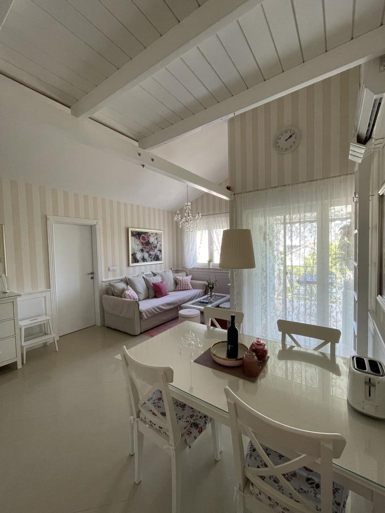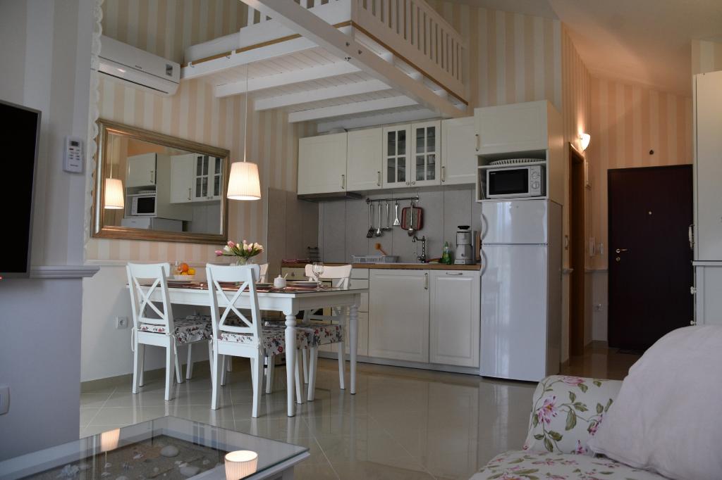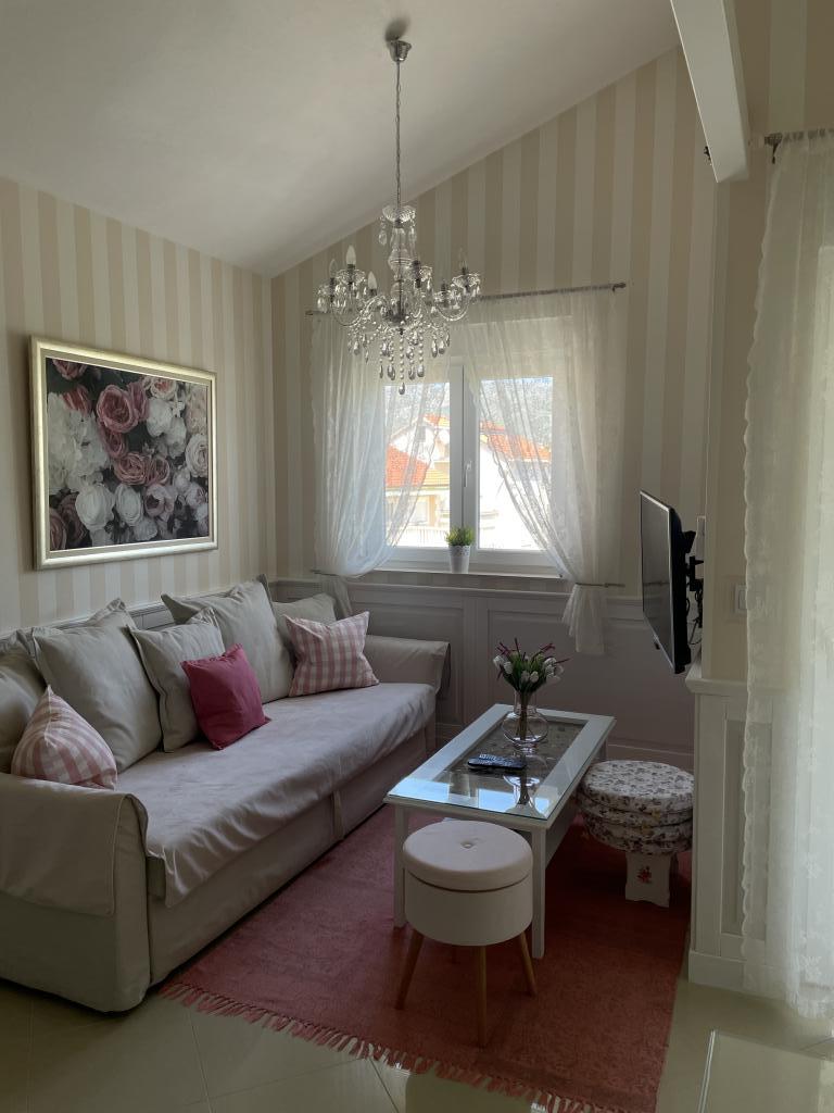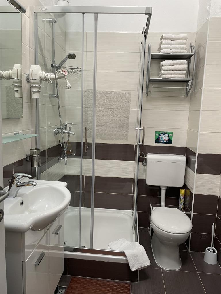 U apartmanu se nalazi jedna spavaća soba sa bračnim krevetom, a dodatno uz to ima i kauč na razvlačenje koji je pogodan za spavanje. U potpuno novoj ugradbenoj kuhinji nalazi se ceranska ploča, perilica posuđa, kuhalo, aparat za kavu i mikrovalna pećnica. U apartmanu se također nalazi stol sa četiri udobne stolice. U toaletu se nalazi tuš kabina, wc školjka, sušilo za kosu i perilica rublja. U cijelom apartmanu postavljene su visoko kvalitetne pločice, dok je u spavaćoj sobi postavljen parket koji je bajcan bijelom pojom. Završno čišćenje, boravišna pristojba, struja, voda, klima i grijanje su uključeni u cijenu. U vremenu koje provedete kod nas, pored apartmana imate slobodan pristup Internetu (wi-fi) i besplatno parking mjesto (br. 4). Radujemo se Vašoj poruci!