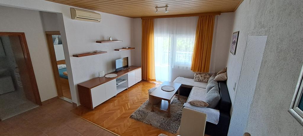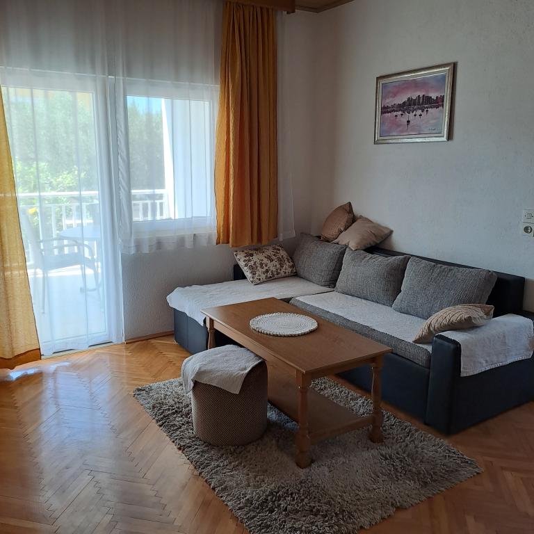 Apartman u mirnom i lijepo zelenilo okruženju s prekrasnim pogledom na planine, na jednoj strani, mora s druge strane. Čisto, dobro održavan i schudny. Veliki prostor u kući iu dvorištu, pristojan opreme. Vlasnici przesympatyczni, prijateljski, korisna i gostoljubivi. Sjajno mjesto za obiteljski odmor.