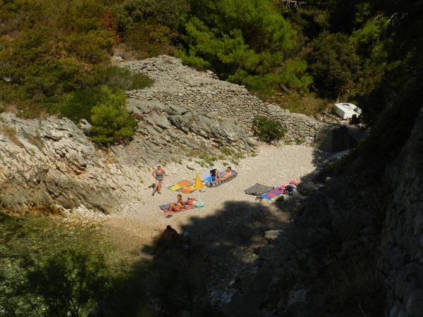 Mirno mjesto na poluotoku Pelješac, udaljenost od plaze (uvala) 200 m, od centra Orebića 5 km, otok Korcula 25 min, trajekt u Trpnju 15 minuta voznje, Dubrovnik 130km.