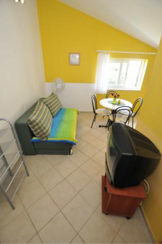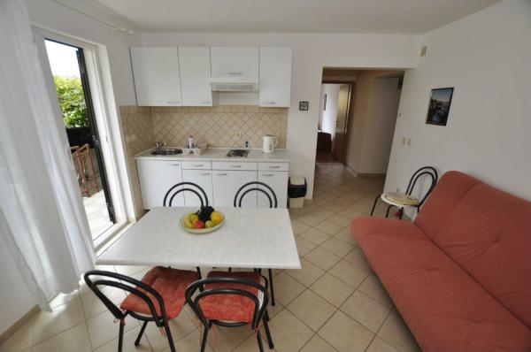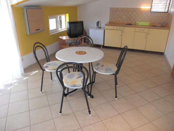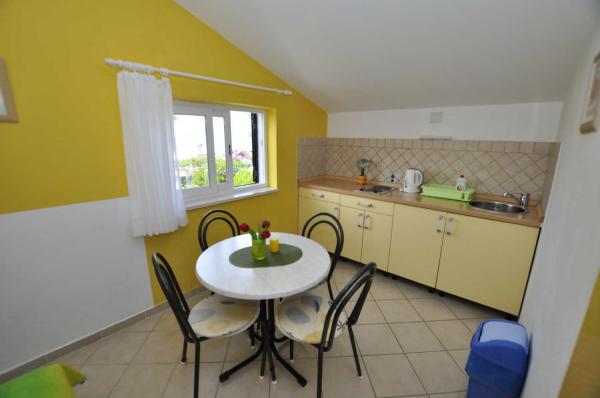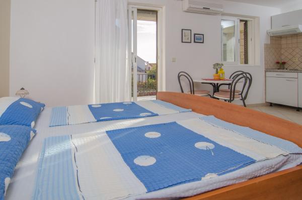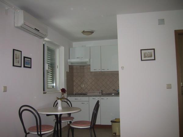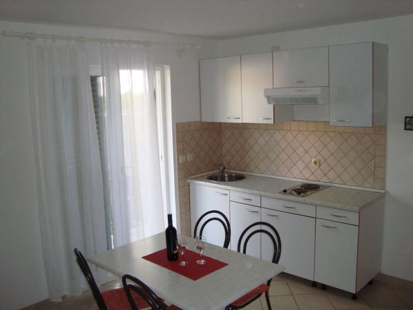 Pročitaj više Smještajne jedinice1) Model rezervacije i plaćanja: Rezervacija po primitku avansne uplate na račun vlasnika u iznosu od oko 20 % ukupne cijene. Ostatak do punog iznosa u roku od 24 sata nakon dolaska. 2) Check-in: nakon 1400 sati > Check-out: prije 1000 sati 3) Od 17. 07. -20. 08. Apartmani se iznajmljuju na periode od 7 dana (subota-subota, nedjelja-nedjelja ) a ostale sezone na periode od 6/5 dana. 4) Objekt raspolaže s 5 apartmana > za vašu udobnost preporučamo kapacitete: A1 Studio=2 osobe; A2(2 2) =2 odraslih i 1/2 djece; A3 i A4 (3 2) =2 odraslih i 2/3 djece; A5 (5 0)=4 odraslih ili 2 odraslih i 2/3 djece. 5) Klimatizacija se dodatno naplaćuje= 5E/dan. Najbolji omjer cijene i kvalitete !