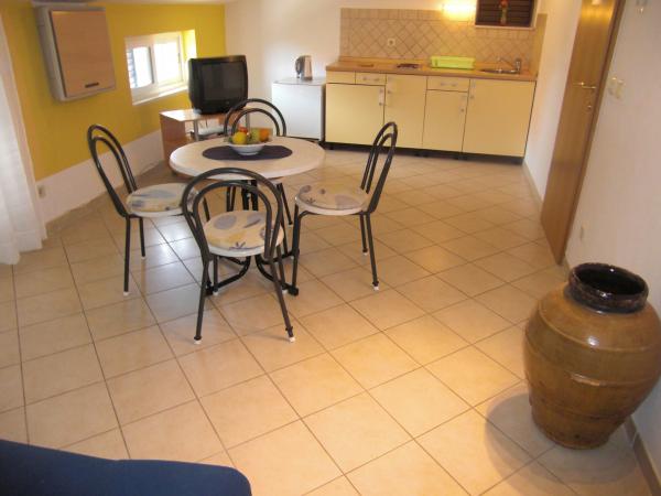 Studio je vrlo komforan, lijepo uređen. Sve naznačeno u opisu je bas tako i u samom studiju. Po dolasku nas je sačekao hladan sok u frižideru za dobrodošlicu., takođe imali smo priliku da probamo domaće grožđe, dar od naše domaćice. Domaćica je vrlo ljubazna, na nas zahtjev za dodatnim pokrivačima je odmah odgovorila i dodala nove pokrivače, slično je bilo i s TV, nije radio ali je odmah zamijenjen ispravnim. Tokom našeg boravka nije bila dostupna satelitska TV, zbog kvara. Moram se zahvaliti domaćinima sto su nam dozvolili da naš pas boravi s nama, učinili su nam veliki uslugu. Jedina primjedba se odnosi na ručnike. Dobili smo samo po jedan mali ručnik, što mislim da je nedovoljno.