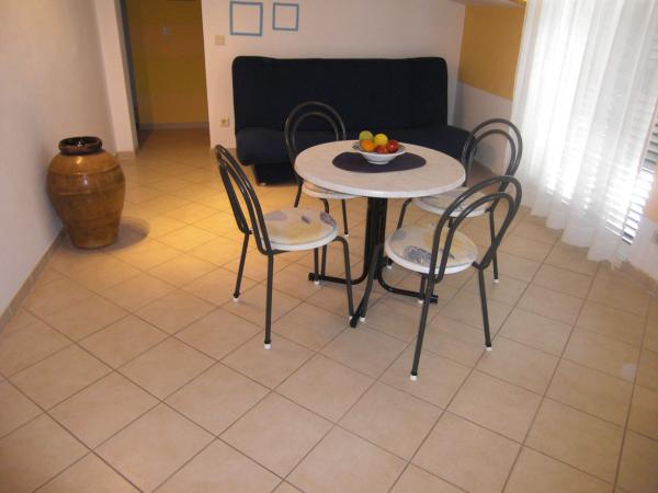 Pozdrav, JA visoko preporučiti stan Dalmatina. Iznajmljuje apartman A3 + 2. Stan uredan, udobni kreveti i jastuci. Klima nije potrebna, jer se stan nalazi u sredini poda, a kapci pokrivaju preko južne sobe nije raspršila. Stan ima dodatnu pogodnost (nije opisano na aukciji) kao: 1. velika terasa natkrivena grožđe (vrlo ugodan) 2. vruće kadica. Vlasnik je vrlo pristojan, vrlo fleksibilan i nenametljiv, uvijek tu da pomogne. Apartmani dobro zvučno izolirane jedni s drugima. Apartman udaljen od glavne ulice oko 100m - noć je zaista miran. Orebić je gradić i sve je blizu. JA visoko preporučiti.