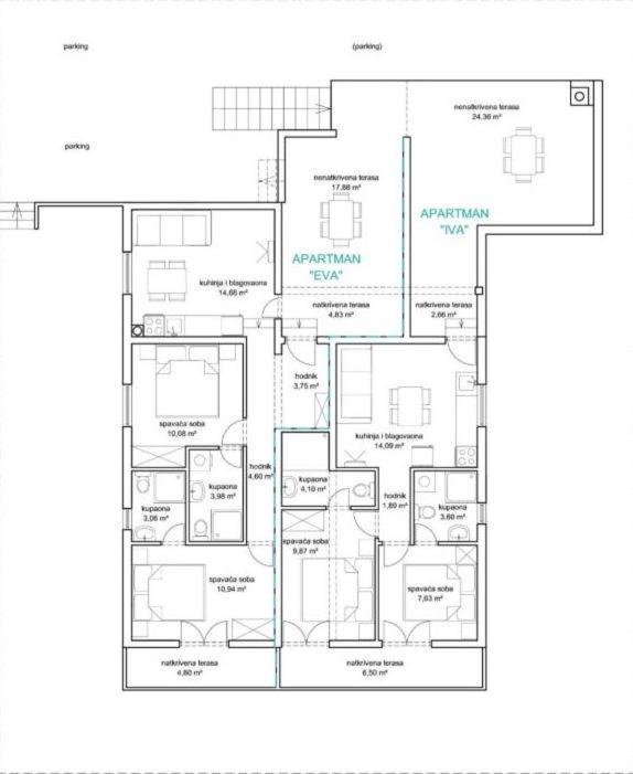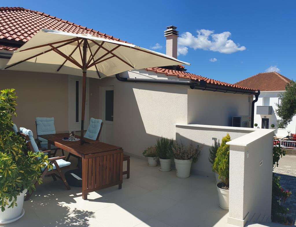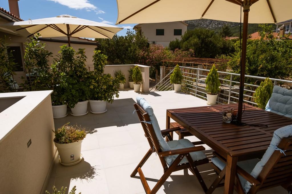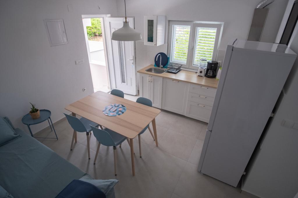 Dva nova, suvremeno opremljena apartmana u mirnom predjelu Orebića, samo 5 minuta hoda do mora i plaže. Svaki apartman ima svoj balkon sa pogledom na vrt, te veliku terasu sa pogledom na planinu sv. Ilija. Apartman je idealan za obitelj sa djecom ili dva para. Za vece grupe (8-10 osoba) mozete rezervirat oba dva apartmana i uživati u druženju. Apartman se sastoji od dvije sobe, dvije kupaonice, dnevnog boravka i kuhinje. Svaka soba ima svoju kupaonicu sa walk in tušem, te perilicom rublja. U dnevnom boravku je dostupna sofa na razvlačenje. U slucaju potrebe nudimo koljevku/krevet na rasklapanje. U kuhinji se između ostalog nalazi i perilica posuđa, kuhalo za vodu, aparat za kavu te blender. Nudimo korištenje zajedničke prostorije za roštilj. Brzi wi-fi, te android TV sa pristupom željenim internet sadržajima. Klima je dostupna u svim sobama i dnevnom boravku. U sklopu objekta imate mogučnost besplatnog parkinga, uz poželjnu najavu. Potrudit ćemo se učiniti vaš boravak ugodnim!