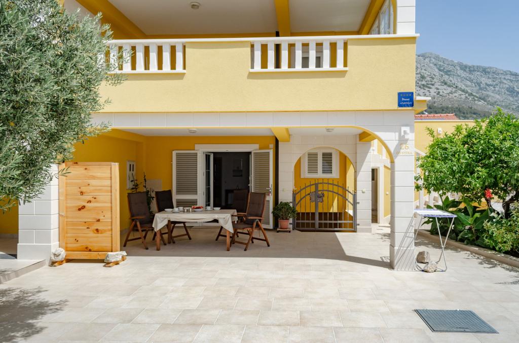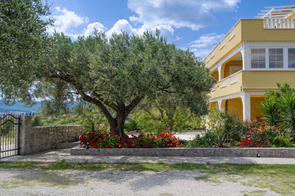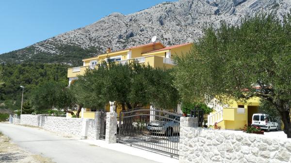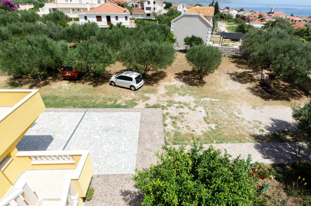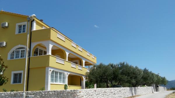 Cjelogodisnji smjestaj. Obiteljska kuca-novogradnja okruzena zelenilom-maslinikom, te okucnicom od 3000m2. Mir i predivan pogled opustaju. Nalazimo se u slijepoj ulici u optimalnij udaljenosti od svih sadrzaja potrebnim za kvalitetan boravak. . 10 minutnom setnjom se stize do plaze, centra, ducana, restorana i sl. Suvremeno opremljeni apartmani ukljucuju posteljinu, wc papir, tekuci sapun za ruke, rucnike i redovito odrzavanje. Wi-fi i kabelski internet prikljucak. A1 apartman sa 3 odvojene spavace sobe-svaka ima svoj tus/wc, dnevnim boravkom, kuhinjom, trpezarijom i galerijom sa pomocnim lezajem za 2djece, ima i 3klime. Uz apartman ide i velika terasa sa suncobranima te garniturom za sjedenje. Pusenje je dozvoljeno samo na terasi, inace je cijela kuca nepusacka. A1 je cijeli drugi kat obiteljske kuce, ima zaseban ulaz te gleda na more u smjeru juga. A2 i A3 se nalaze u prizemlju s pogledom na more. Okucnica pruza dovoljno prostora za parking nekoliko auta i kombija.
