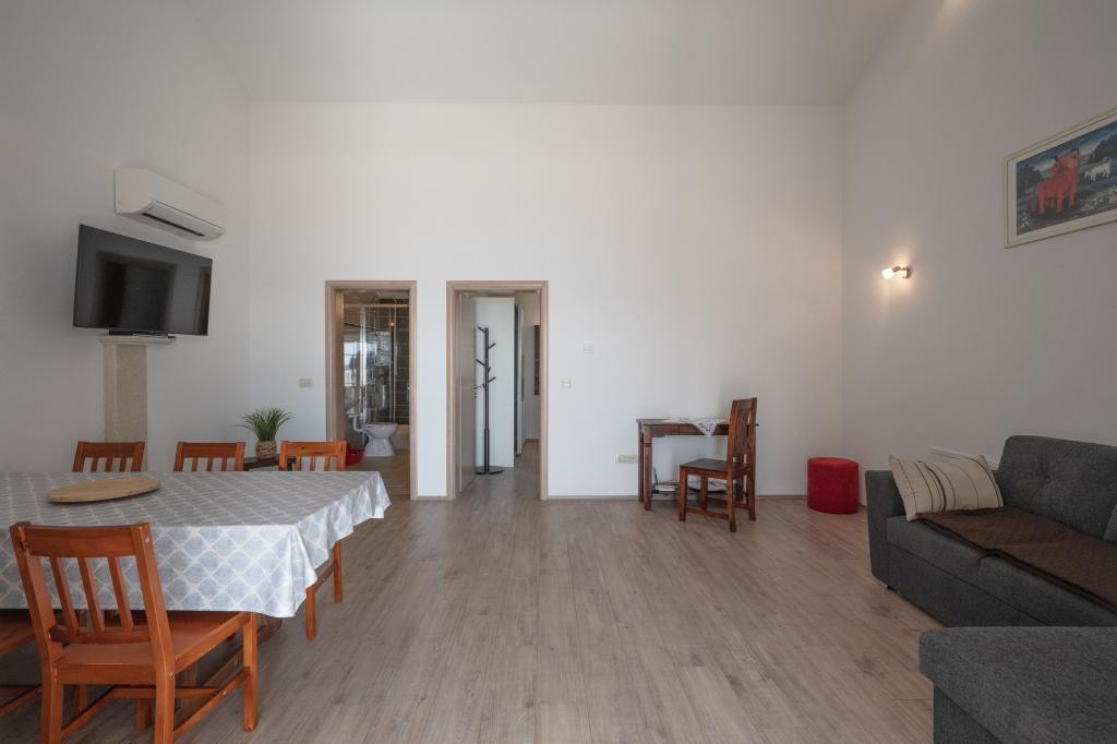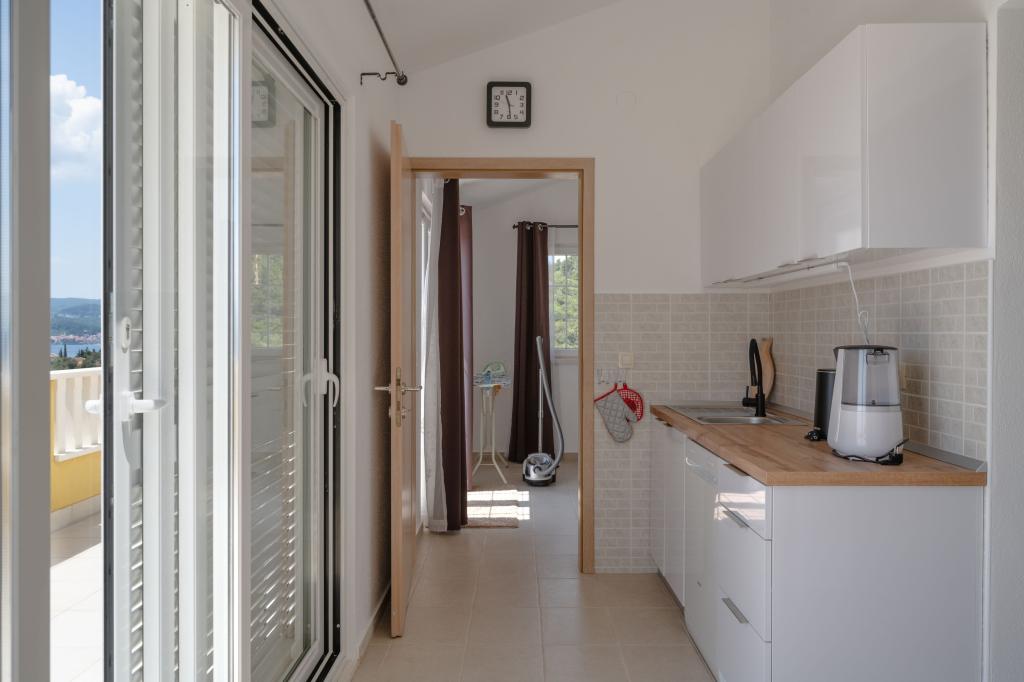 Apartman je bio vrlo prostran, savršeno čist (nikad prije nismo vidjeli tako čist apartman), potpuno opremljen - perilica posuđa, pećnica, veliki hladnjak sa zamrzivačem, puno kvalitetnog kuhinjskog pribora. Vlasnica nam je sredila boravak, promijenila ručnike i namjestila krevete. Zaista odlična usluga. Bila je ljubazna i uslužna. Terasa s ležaljkama bila je nevjerojatno prostrana s prekrasnim pogledom na more i okolne otoke. Štoviše, terasa je bila čista kao staklo. Wi-Fi vrlo dobar. Možda samo kreveti malo škripe. Nevjerojatan odmor, svakako ga preporučujemo.