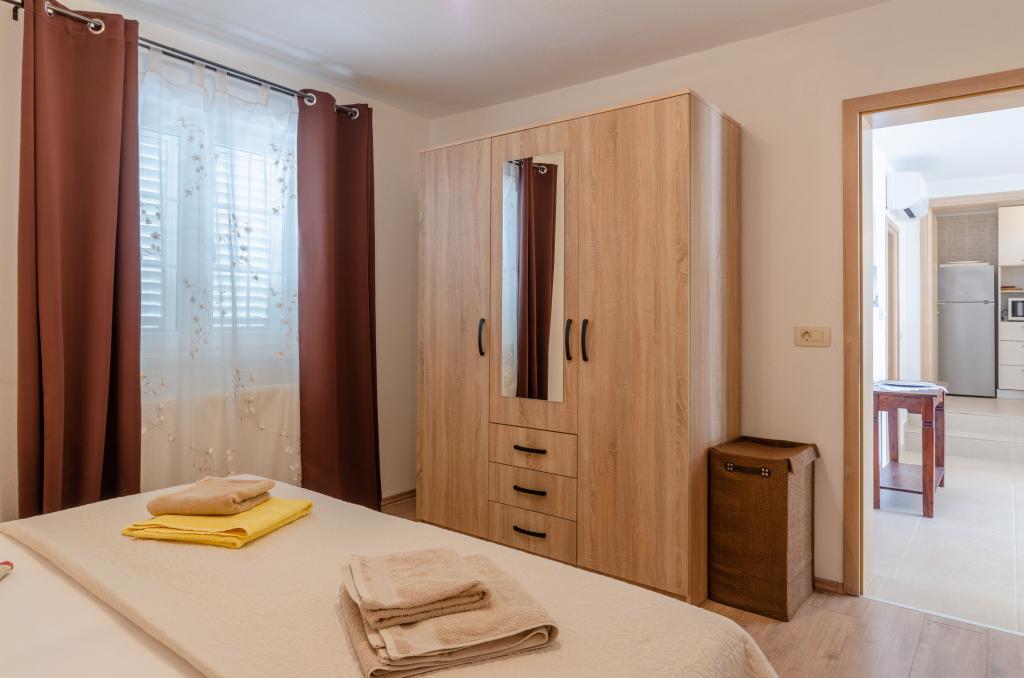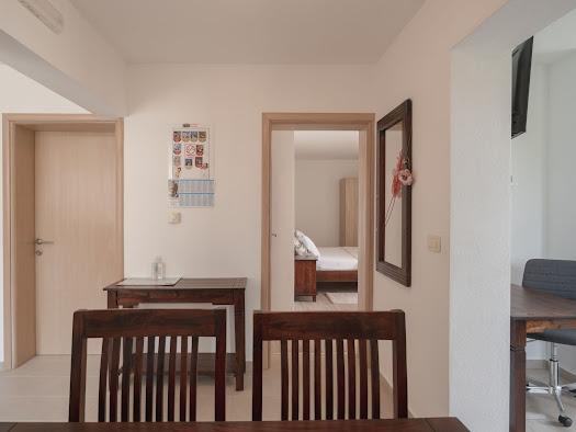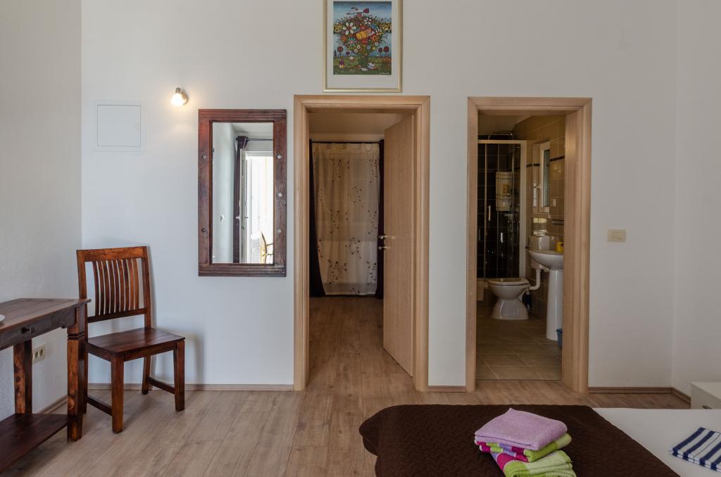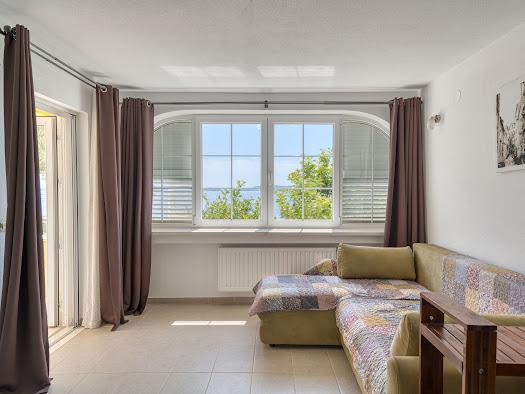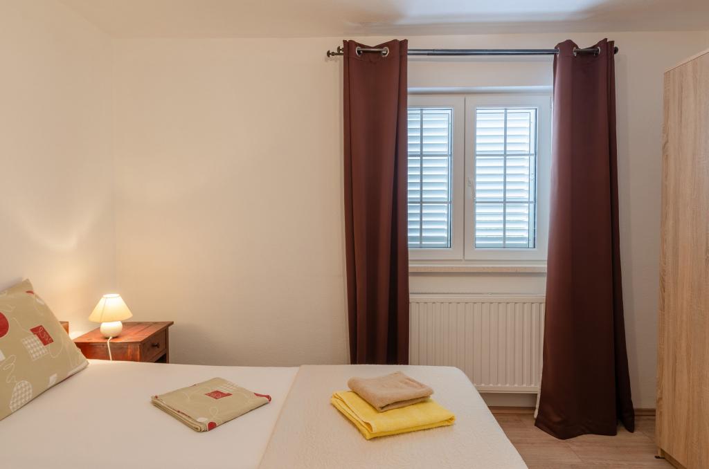 Odličan stan. Prostran, čist, dobro opremljen. Veliki udobni kreveti, terasa s ležaljkama okružena njegovanim zelenilom, prekrasan pogled na more. Okolo je mir i tišina. Nitko ne ide ovuda, nitko ne hoda. Kao u raju je. Pristup stanu je blago uzbrdo ili stepenicama, ali je kratak i bez umora. Ali udaljavanjem od centra dobivamo nevjerojatan, umirujući ugođaj, pogled i mir. Domaćica je vrlo ljubazna i gostoljubiva. Brine se za sve, zahvaljujući čemu postoje takvi i nikakvi drugi uvjeti. Ovdje smo proveli 2 tjedna i voljeli bismo ostati duže. Najbolji smještaj koji smo imali u Hrvatskoj po pristupačnoj cijeni.