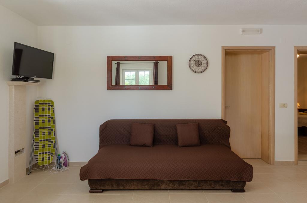 Apartman se nalazi u prizemlju i ima spavaću sobu s bračnim krevetom, dnevni boravak s kaučem na razvlačenje, potpuno opremljenu kuhinju s velikim hladnjakom i kupaonicu s velikim tušem. Posjed oko apartmana je velik, s puno parkirnih mjesta. Tu su masline, ispod kojih sam parkirao. Apartman mi se činio vrlo dobro održavanim, čistim i novim. Osjećate se kao kod kuće. Tu je TV s Netflixom i YouTubeom. Naš apartman bio je skriven u zgradi i nudio nam je puno privatnosti. Pogled iz apartmana je nevjerojatan. Plaža u luci je relativno blizu, ali povratak stepenicama je malo duži. Za one koji preferiraju laganu vožnju, možete doći i automobilom. Lidia je vrlo komunikativna. Razgovarala sam na hrvatskom putem WhatsAppa, ali na licu mjesta je to bila mješavina poljskog, hrvatskog i engleskog jezika. Vrlo smo zadovoljni. Pozdrav, Lidija Vidimo se