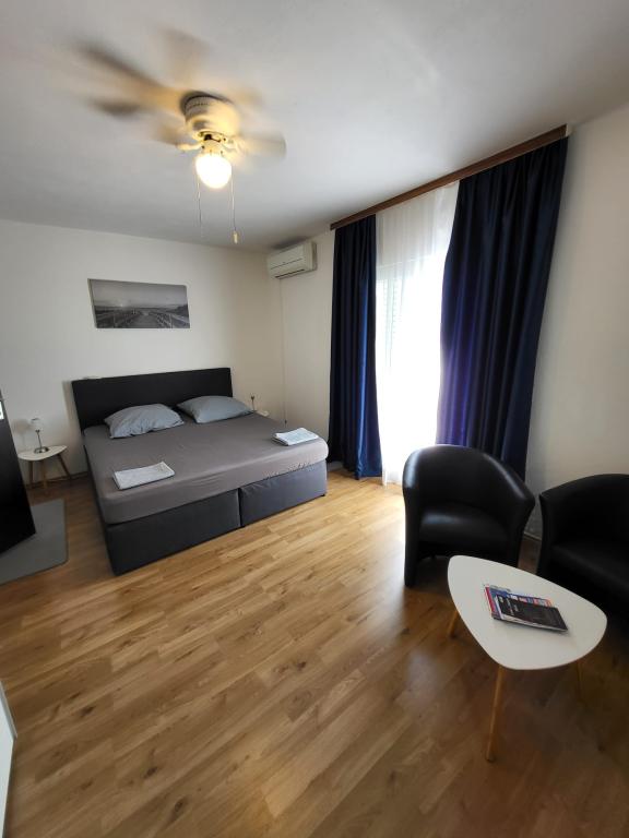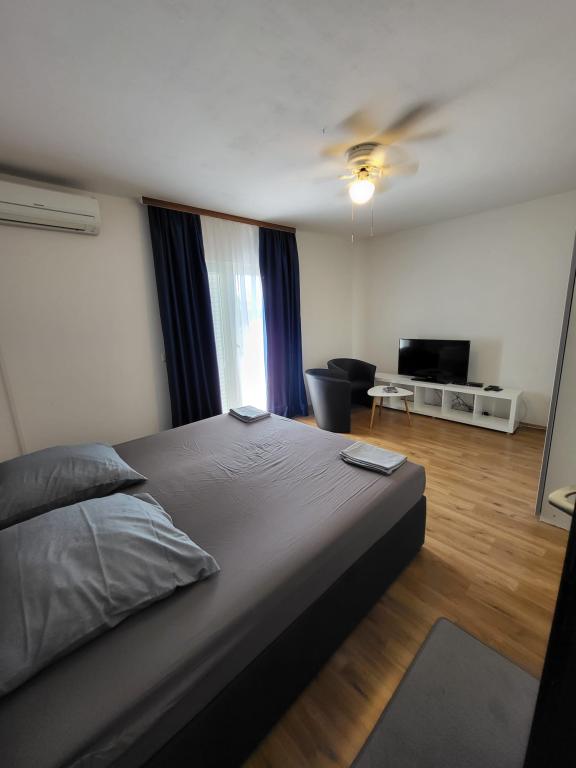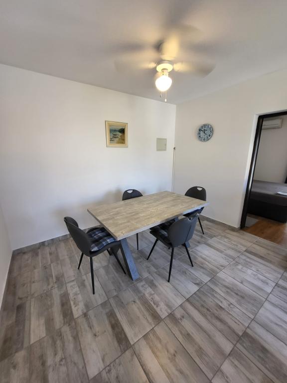 Pročitaj više Smještajne jediniceCijena uključuje: - smještaj u apartmanu po dogovoru - parking - Wi-Fi - klima - sav sadržaj u sklopu apartmana ( kuhinjske potrepštine, pribor za jelo, ručnici, posteljina, tjedno mijenjanje posteljine, čišćenje apartmana na dan dolaska gostiju) Plaćanje: za potvrdu rezervacije potrebno je uplatiti akontaciju u iznosu 30% ukupne cijene ili uplatiti ukupnu cijenu. Prijava u apartman: od 15:00 h Odjava iz apartmana: do 10:00 h Maksimalan broj osoba po apartmanu: 4