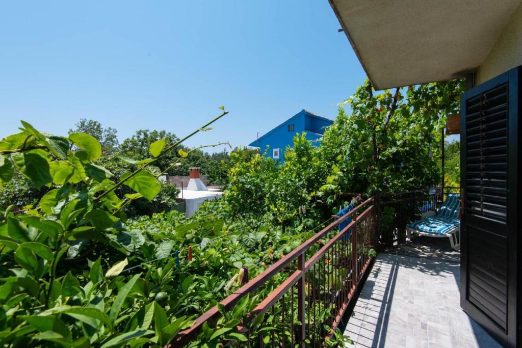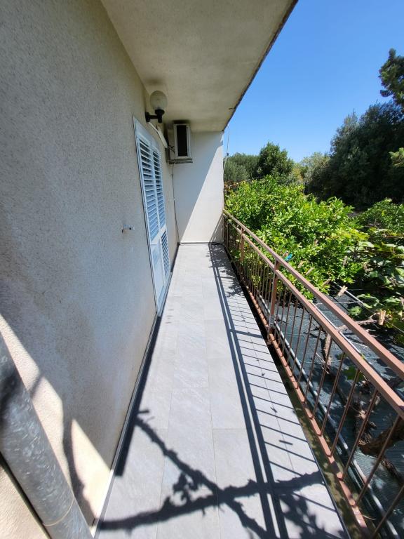 Nalazimo se u samom centru Orebića i sav potreban sadržaj je dostupan pješice. Plaža je udaljena samo par minuta hoda. Na udaljenosti od 50 metara se nalazi dućan, pekarnica, apoteka, kafić i fast food. A u blizini se također nalaze ostali sadržaji kao što su restorani i druge aktivnosti. Ovaj objekt s vrtom nudi klimatiziran smještaj s balkonom i terasom te pogledom na more. Apartman uključuje besplatan parking, klimu, TV sa satelitskim programima i Wi-Fi. Također sadrži potpuno opremljenu kuhinju sa svim potrebnim dodacima. Kuća je smještena u mirnoj ulici, s pogledom na more, vrt i ulicu. Apartman AP1 DOWN: Apartman je veličine 61 m2 + terasa 16 m2 + balkon 7 m2. Apartman sadrži kupaonicu, 2 spavaće sobe, blagovaonicu i kuhinju. Apartman AP2 UP: Apartman je veličine 61 m2 + terasa 4 m2 + balkon 7 m2. Terasa i balkon su natkriveni s tendama za potrebnu hladovinu i opremljeni vanjskim namještajem. Apartman sadrži kupaonicu, 2 spavaće sobe, blagovaonicu i kuhinju.