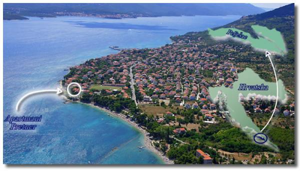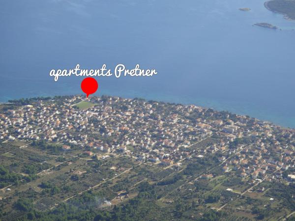 Apartmani Pretner u Orebiću na poluotoku Pelješcu smješteni su na mirnom i tihom mjestu, uz samo more, odmah do glavne pješčane plaže Trstenica. Posjed od 2000m2 obuhvača sa južne strane vrt prepun zelenila sa mediteranskom vegetacijom i kaminom koji je gostima na raspolaganju. Sa sjeverne strane nalaze se stabla agruma i maslina i veliko parkiralište. Svaki apartman je klimatiziran i opremljen sa sat Tv i wireless internetom.