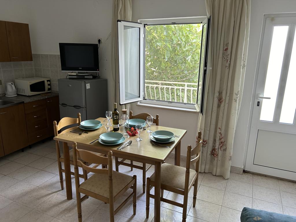 Uživajte u udobnom boravku u srcu Orebića! Smješteni u centru Orebića, samo 120 metara od plaže, Apartmani Terezija nude idealno mjesto za opuštajući odmor na Pelješcu. Svaki od apartmana opremljen je svime što vam je potrebno za ugodan boravak: Klima uređaj za osvježenje u vrućim ljetnim danima TV za zabavu i opuštanje Dnevni boravak s kaučem na rasklapanje za dodatno spavaće mjesto Dobro opremljena kuhinja s blagovaonicom za pripremu ukusnih obroka Vlastitu kupaonicu s tušem i priborom za higijenu Hladnjak, pećnica, ploča za kuhanje i električno kuhalo za jednostavno kuhanje Besplatan Wi-Fi za ostajanje u kontaktu s obitelji i prijateljima Parking ispred kuće za besplatno parkiranje Uz sve ove udobnosti, Apartmani Terezija nude i prekrasan ambijent te prijateljsku atmosferu. Domaćini su vam na raspolaganju za sve informacije i savjete kako biste što više iskoristili boravak u Orebiću i okolici. Rezervirajte svoj apartman danas i iskoristite sve prednosti Apartmana Terezija