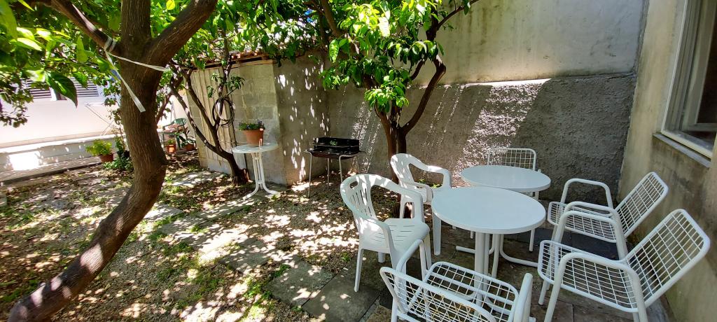 Turistička pristojba je uključena u cijenu. Šaljemo pismenu potvrdu rezervacije (voucher)Ispred kuće je veliki vrt u kojem je kamin za roštilj sa stolom i klupama u hladovini. U vrtu imamo mnogo malih i velikih kornjača koja su atrakcija djeci, vole se s njima igrati i hraniti ih. U garaži se sigurno mogu skloniti bicikli i rekviziti za plažu koji su preveliki za unos u apartman. Na upit možemo ponuditi dječji krevetić i hranilicu za bebe.